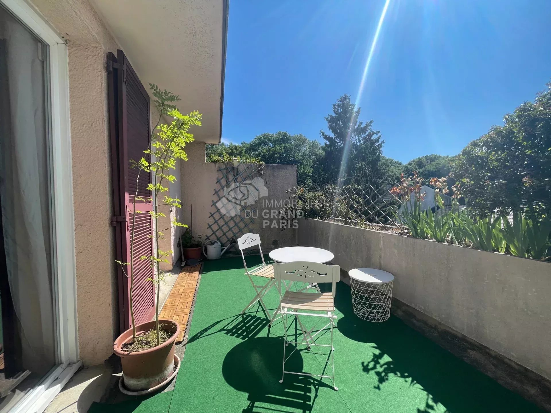 Allée Georges Sand, à 5min à pieds du RER A Noisiel, nous vous proposons un appartement de 41.83 m²de type F2 comprenant: Entrée, dégagement, pièce principale donnant sur une terrasse plein ouest de 15m² environ, cuisine américaine équipée, 1 chambre avec placard et salle de bains avec wc.