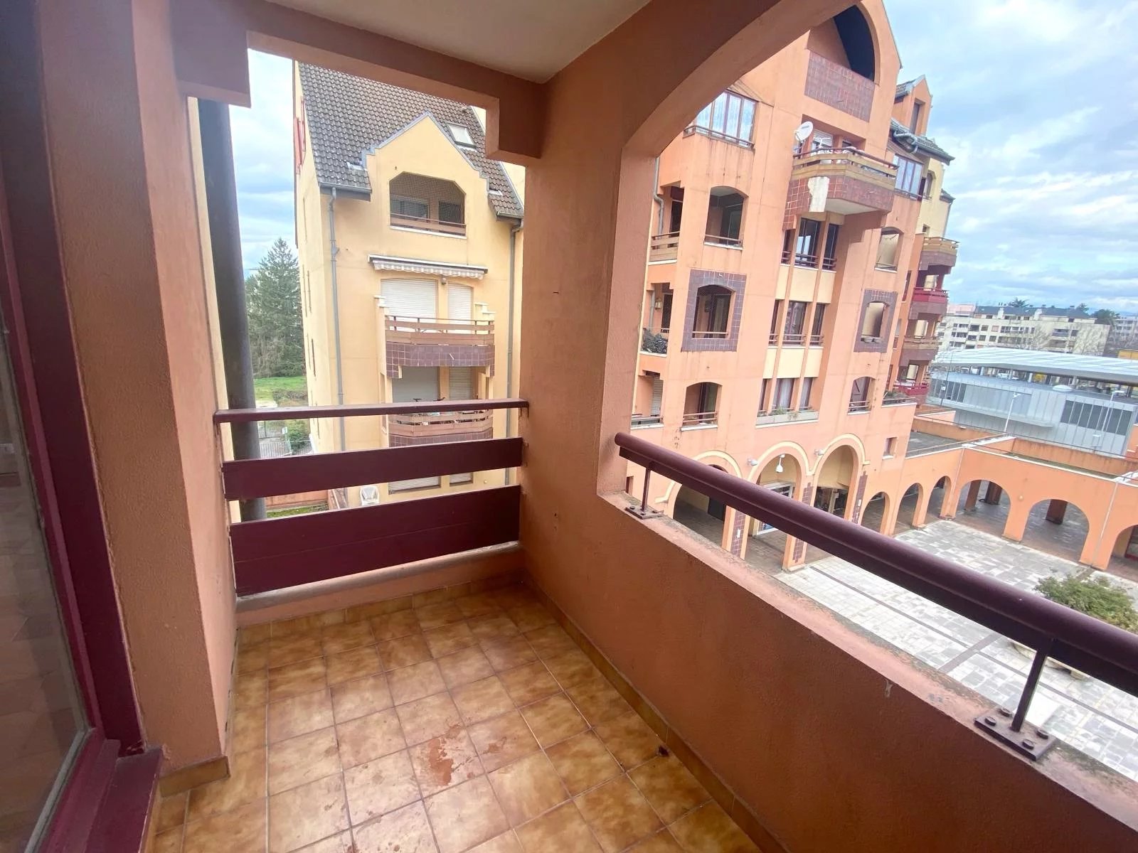 GAILLARD, Secteur douane de Moellesulaz, appartement 2 pièces au 3° étage entièrement repeint à neuf, avec cuisine équipée (four, plaque, hotte le tout neuf), balcon, salle de bain avec baignoire et meuble vasque neufs et wc séparé, vue dégagée et au calme,