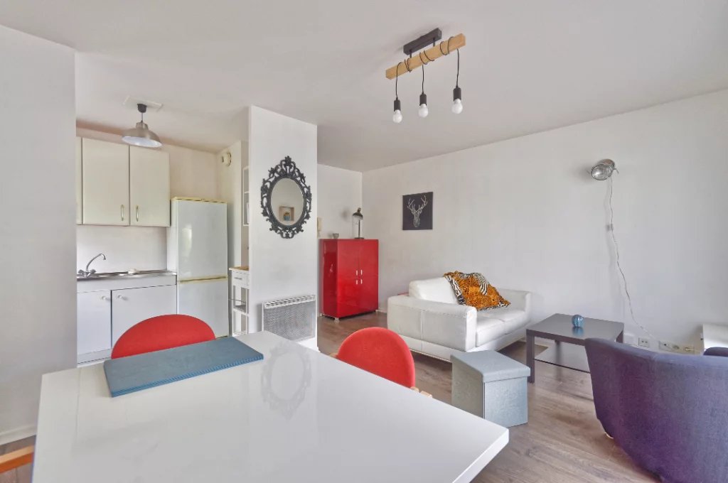 Appartement de deux pièces composé d'une entrée, séjour, cuisine aménagée et équipée, une chambre avec salle de bains et WC indépendant.