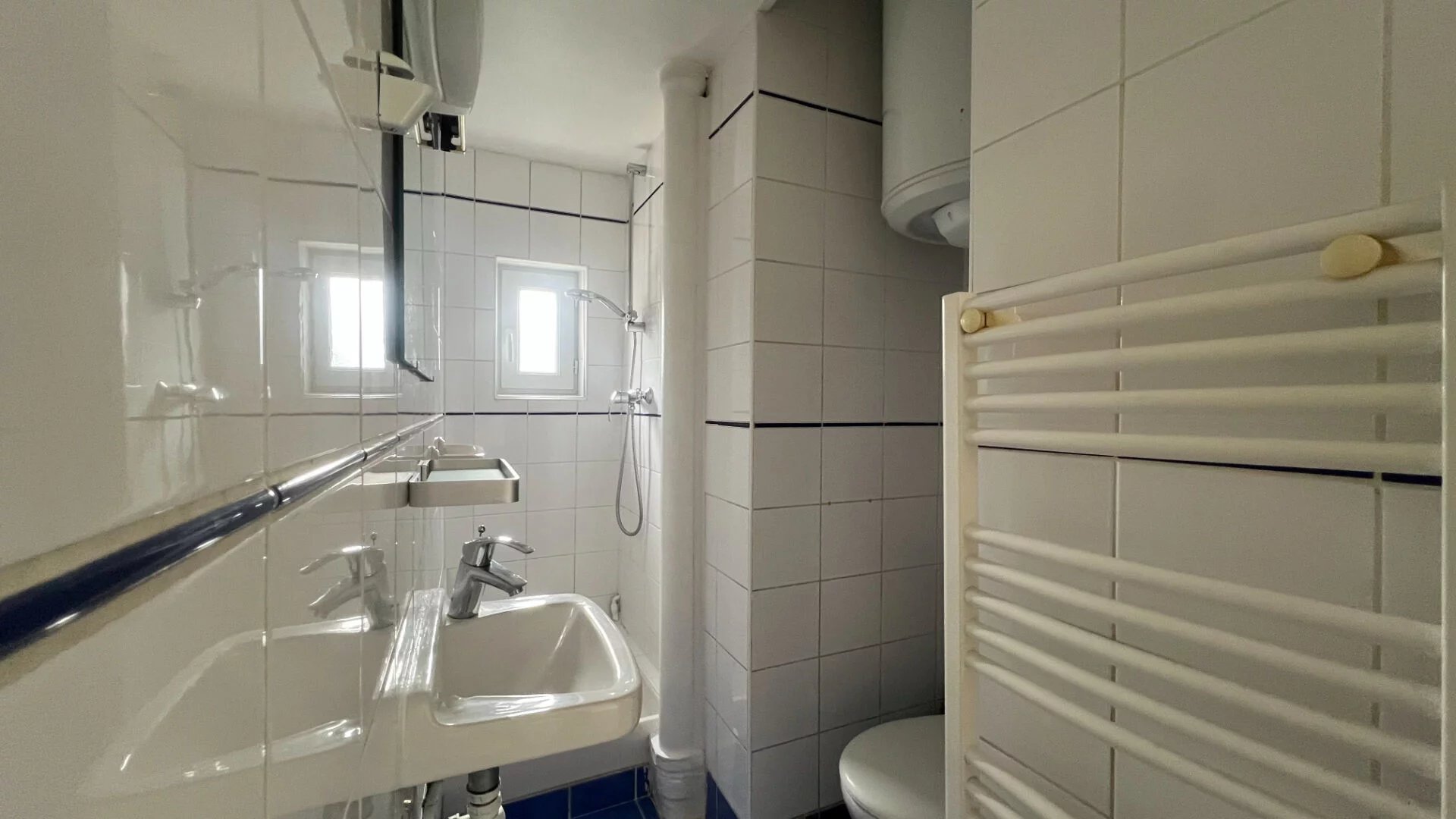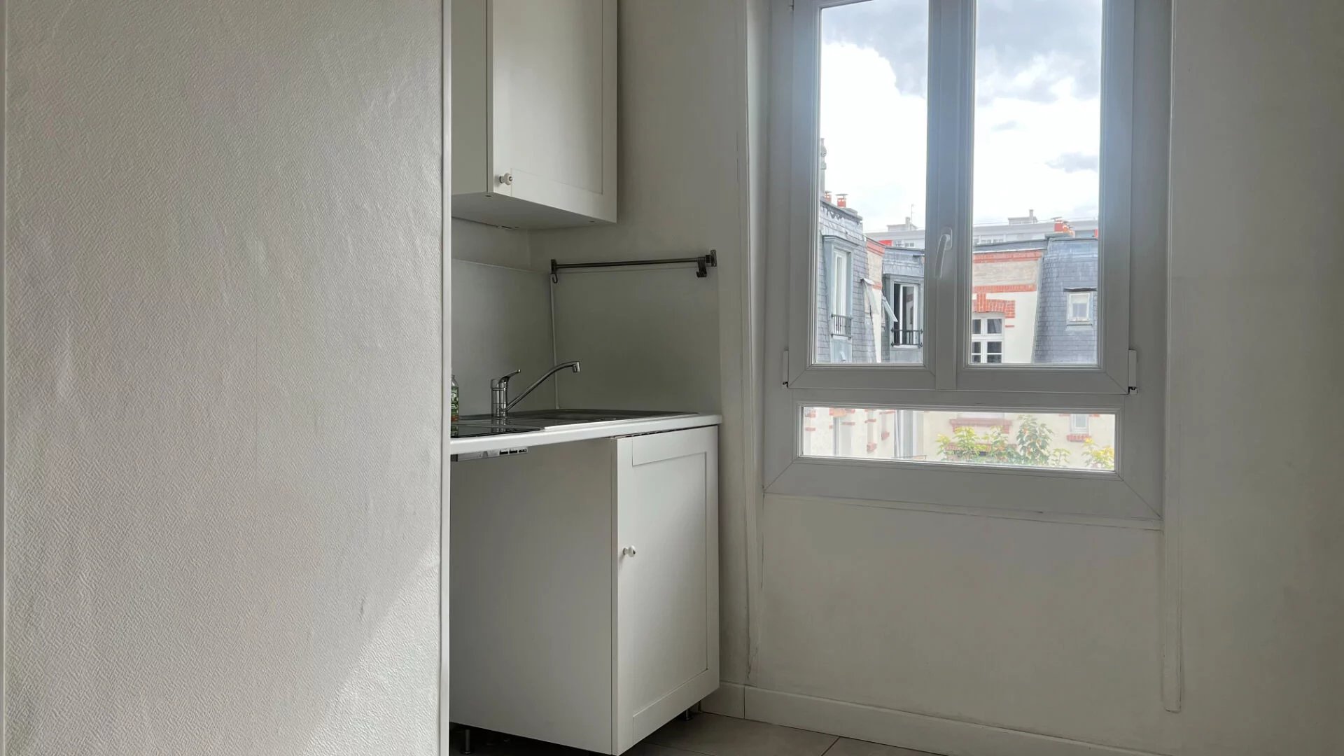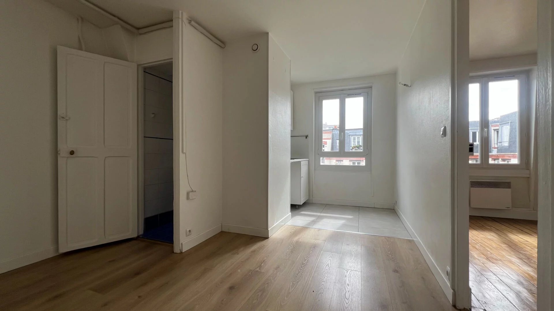 PANTIN ? Charmant deux pièces situé rue Jean Nicot, à quelques pas du métro Eglise de Pantin, au sixième étage sans ascenseur et donnant sur cour intérieure. Proche de toutes commodités, au dernier étage d'un bel immeuble ancien. Calme et lumineux, rénové après des travaux d'isolation thermique et disponible immédiatement. Grand séjour de 14 m2 avec kitchenette, salle d'eau avec WC et grande chambre de 13 m2. Honoraires de location - 434.55 euros Dépôt de garantie - 698.00 euros