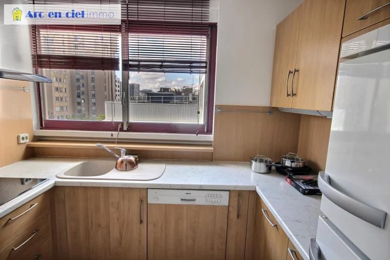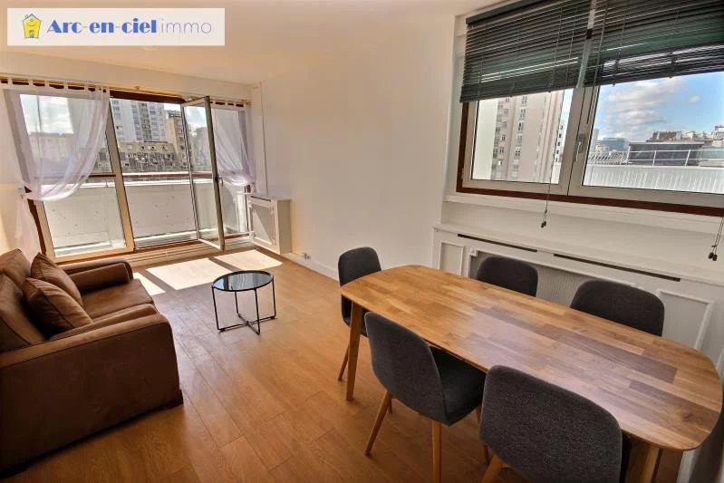 Paris 15, Métro Plaisance, dans Résidence 'Super Montparnasse' avec PISCINE sur le toit, ASCENSEURS et GARDIENS, situé entre les rues G. Pitard et A. Bertillon, superbe, rationnel et très LUMINEUX 2 Pièces loué meublé de 44.58m2 habitable + BALCON au 4ème étage sans vis à vis et vue dégagée. Composé d'une vaste entrée meublable, séjour double exposition avec porte-fenêtre vitrée desservant balcon, cuisine équipée (meubles hauts et bas, plan de travail, grand réfrigérateur congélateur, plaque vitro 4 feux, hotte, four classique, lave vaisselle et vaisselle) indépendante mitoyenne au séjour, wc séparé avec espace rangement et étagères, sas à partir de l'entrée accédant à la chambre avec placard pan mural dressing étagères et salle d'eau spacieuse avec espace douche contemporaine et branchement lave linge. Cave en sous sol. Chauffage collectif urbain.