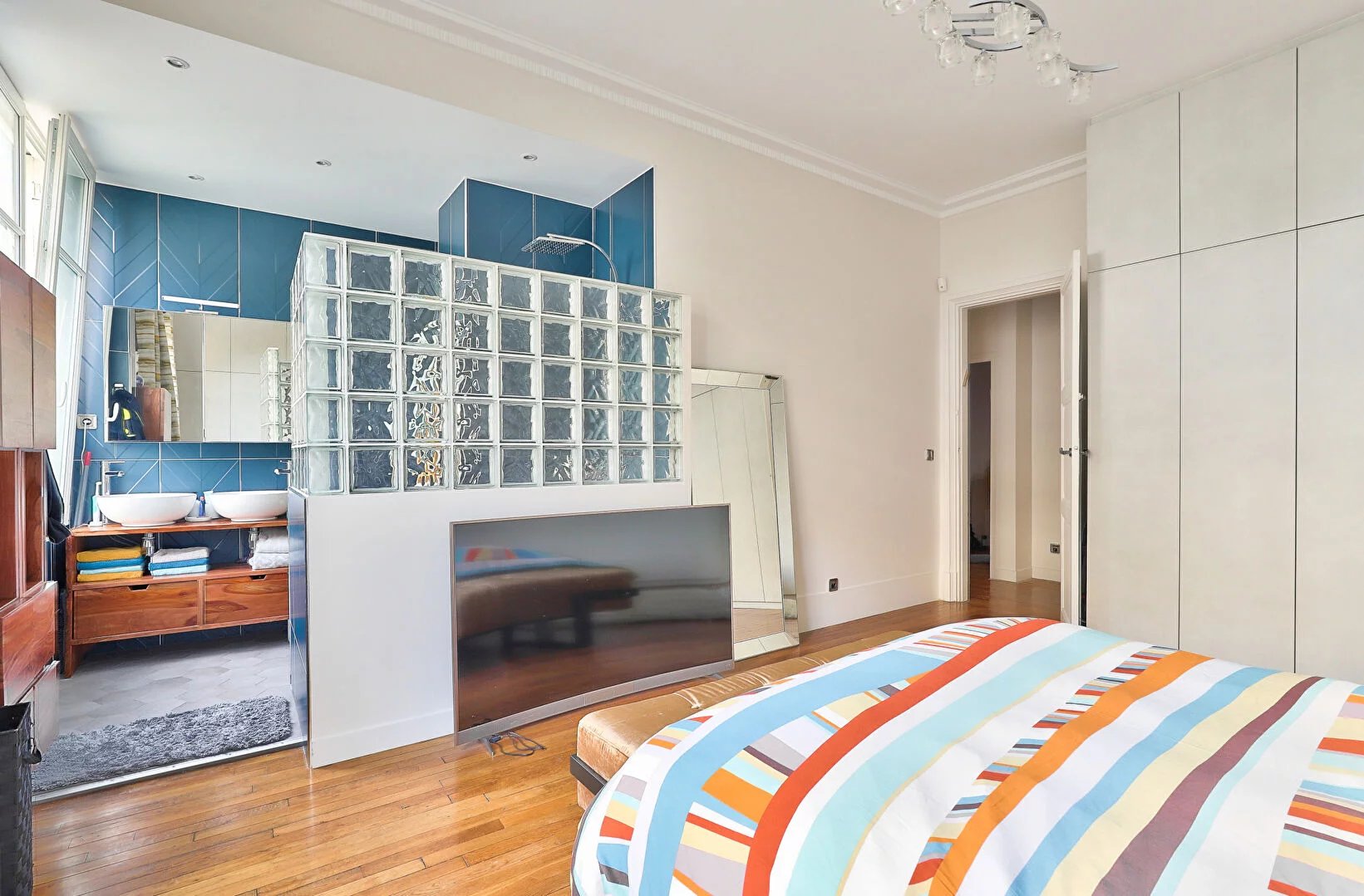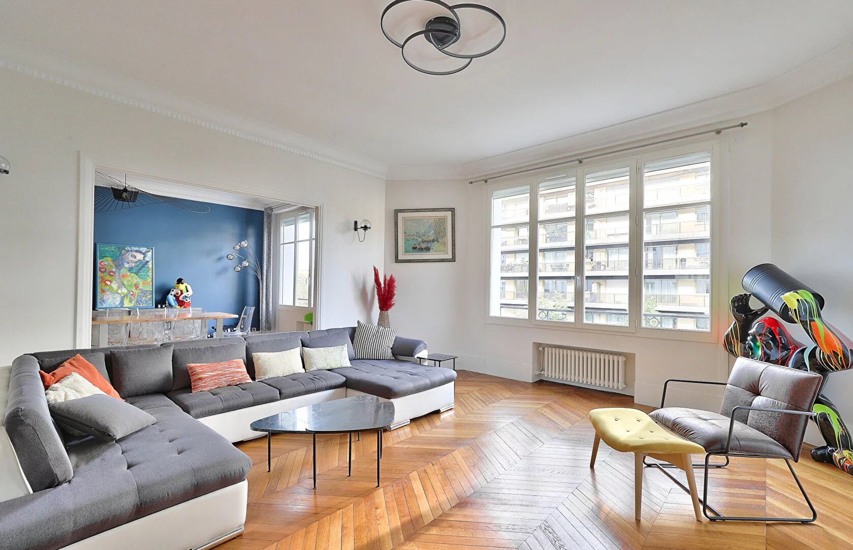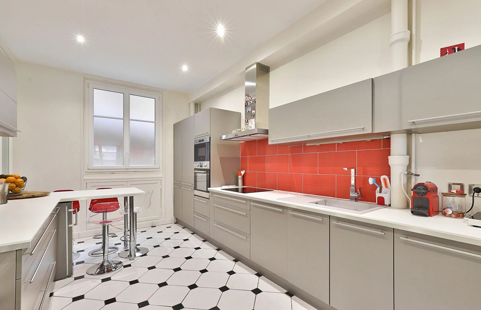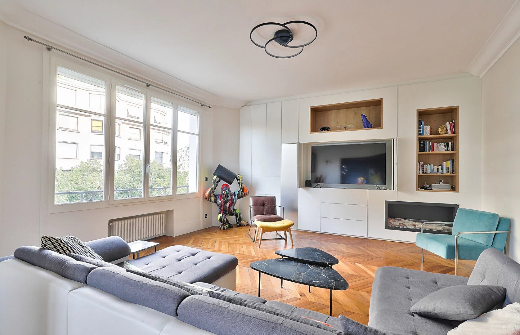 Exclusivité, location meublée dans un magnifique Immeuble 1930 de grand Standing avec gardien, splendide appartement rénové d'une superficie de 152 m², au 3ème étage avec ascenseur comprenant une galerie d'entrée, double séjour et salle à manger d'une superficie de 50 m², grande cuisine indépendante dinatoire aménagée équipée, une suite parentale avec nombreux rangements intégrés et salle de douche avec WC, 2 chambres, un bureau, une 2ème salle de bains, WC invités. Buanderie. Calme et Lumineux. Double exposition Ouest/ Est , vue dégagée sans vis à vis, plein ciel. Beau parquet point de Hongrie, moulures et hauteur sous plafond de 3 mètres. Balcon. Cave en sous/sol. Contact guillaume 0688558103 guillaume@odeonimmobilier.fr