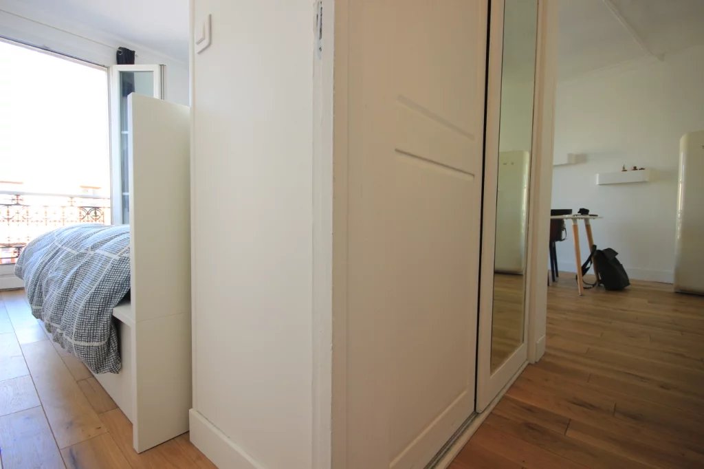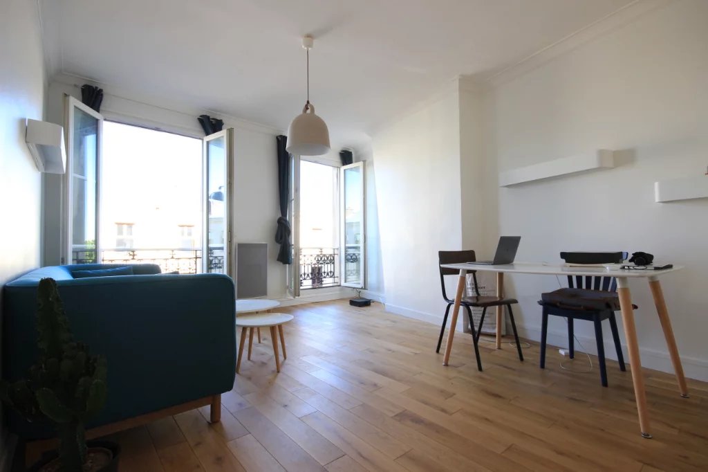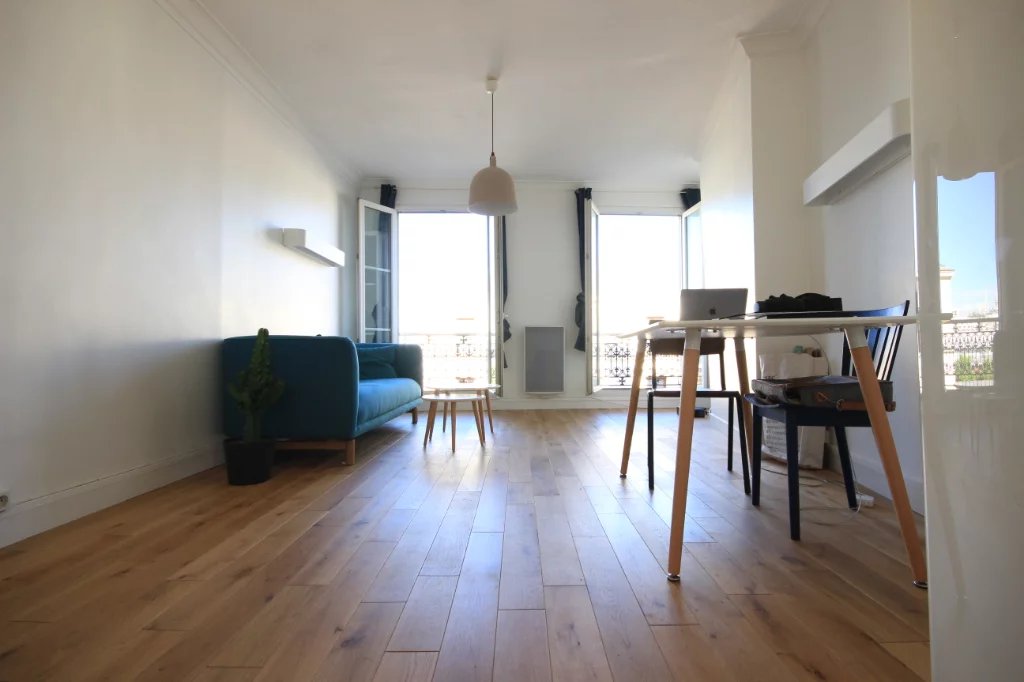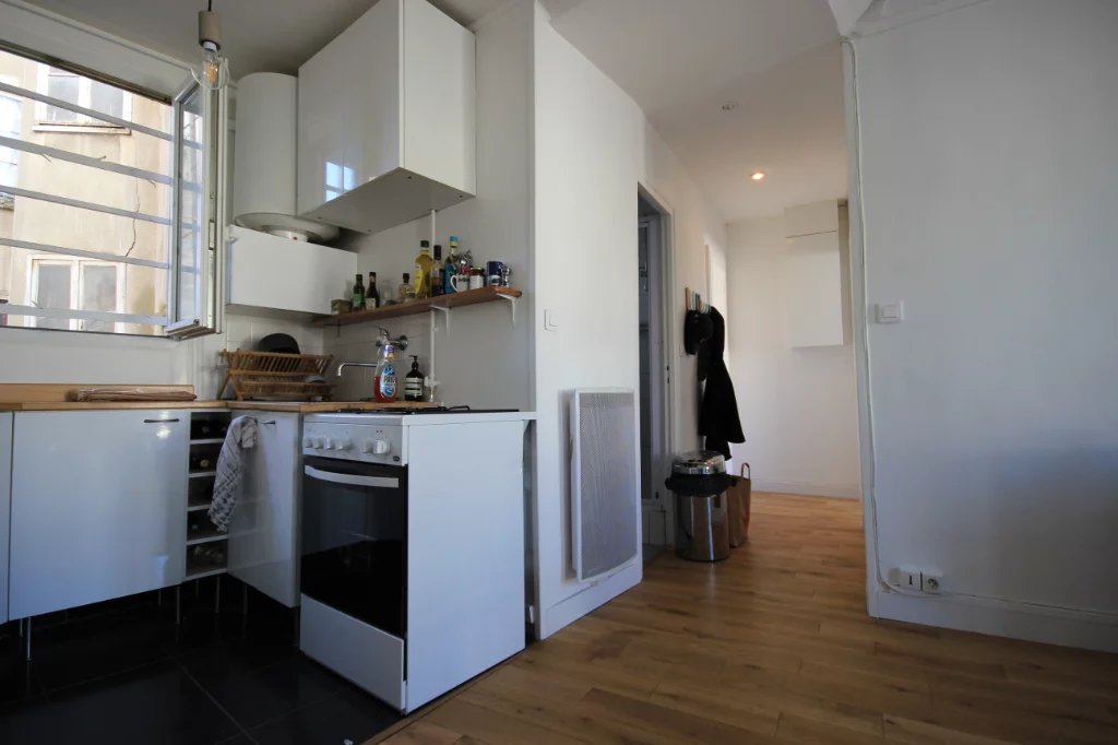 PARIS XIX - Situé rue d'Aubervilliers face au Sacré-Coeur, au deuxième étage d'un immeuble ancien, proches de nombreux commerces et du métro Stalingrad (ligne 7). Peintures du logement rénovées. Location meublée. Entrée avec placards, chambre avec lit double, salle d'eau avec WC, cabine de douche et machine à laver, cuisine aménagée et équipée ouverte sur un beau séjour lumineux avec une belle vue sur le Sacré-Coeur. Honoraires de location - 523.65 euros TTC Dépôt de garantie - 1300.00 euros
