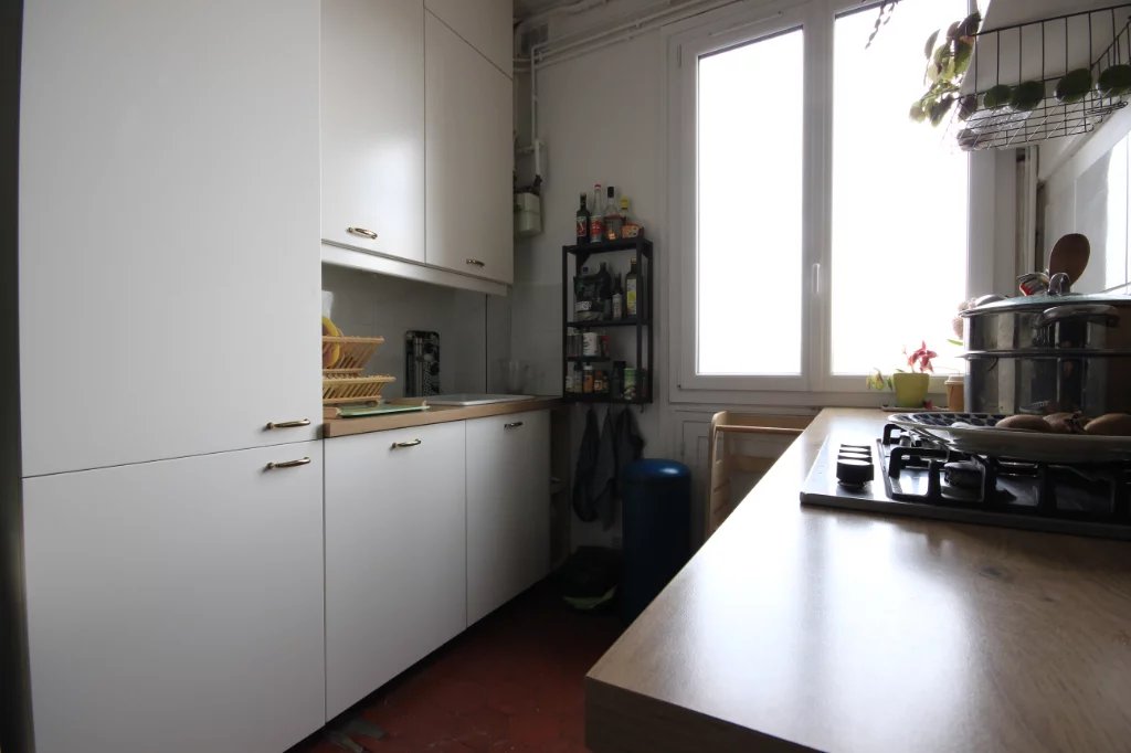 PARIS XIX - Situé rue d'Aubervilliers face au Sacré-Coeur, au deuxième étage d'un immeuble ancien, proches de nombreux commerces et du métro Stalingrad (ligne 7). Peintures du logement rénovées. Location meublée. Entrée avec placards, cha ...