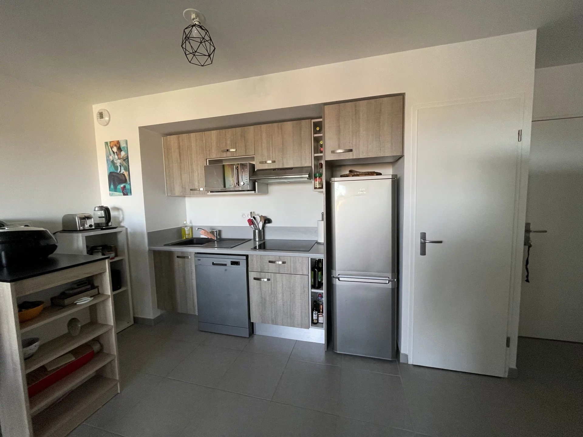 L’appartement se compose d’une entrée avec rangements, d’un séjour spacieux ouvert sur une cuisine moderne aménagée et équipée (four, plaques et hotte), l’ensemble donnant accès à un agréable balcon, idéal pour profiter des beaux jours.