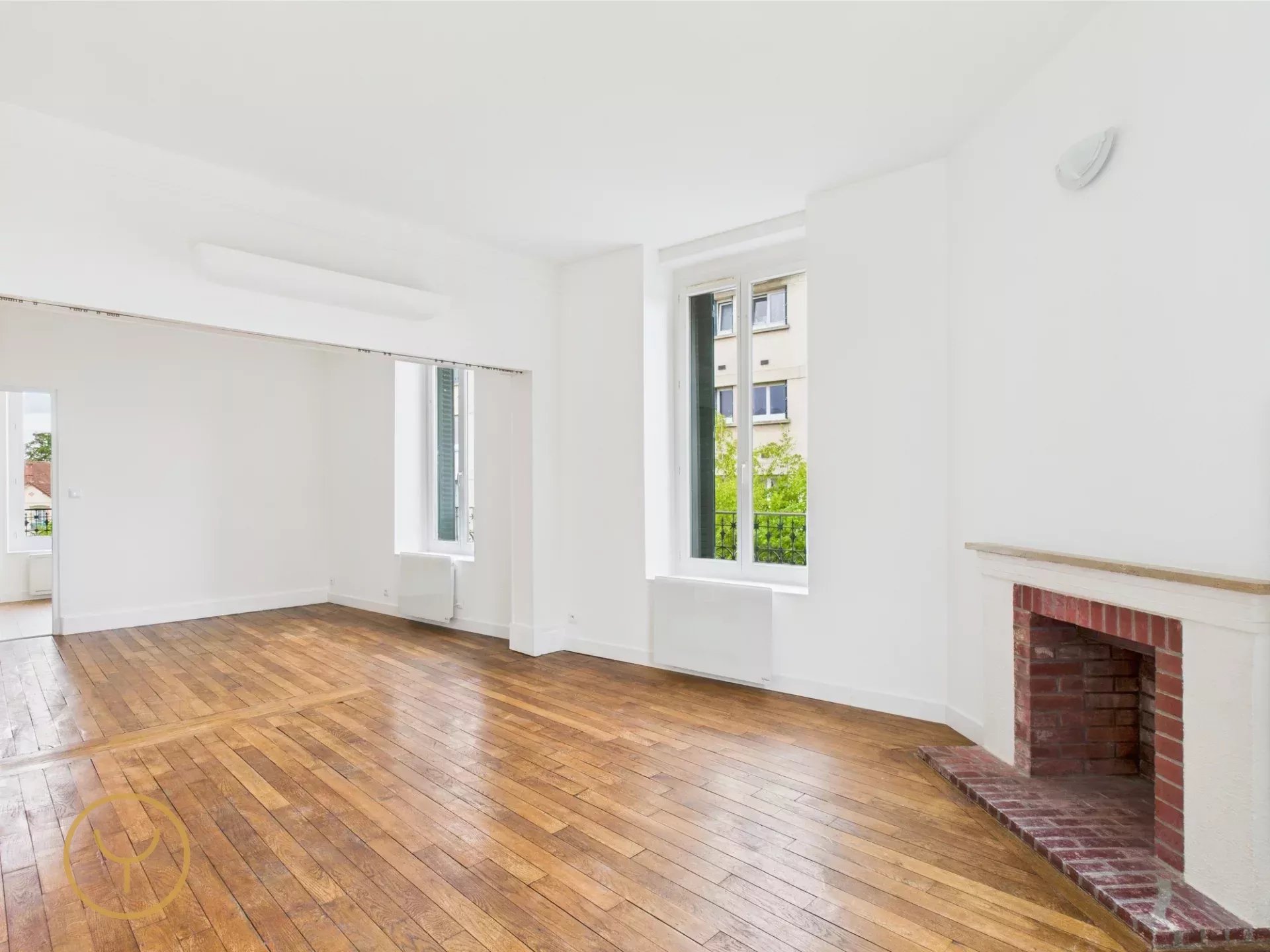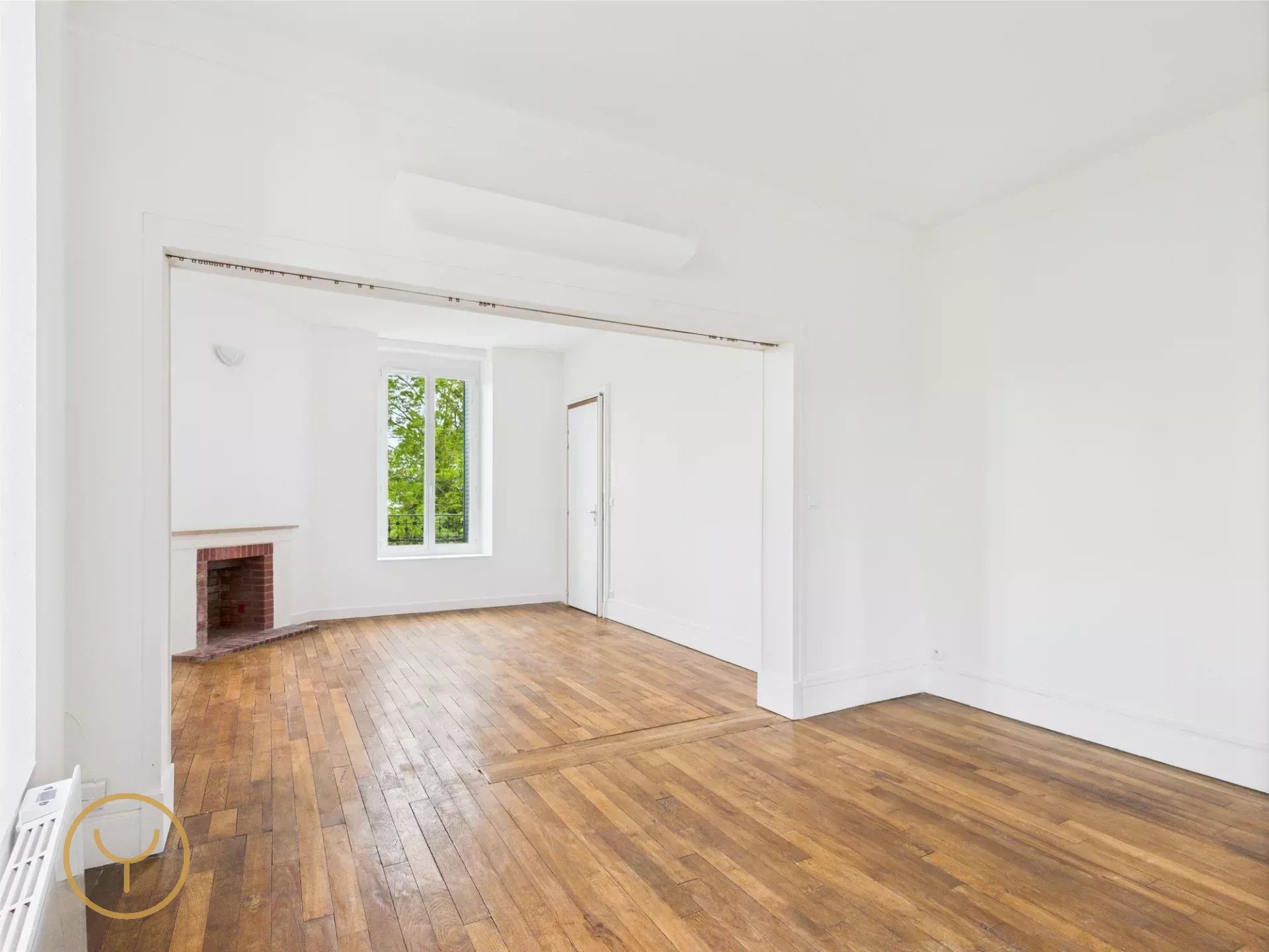 Vous apprécierez particulièrement sa spacieuse pièce de vie de plus de 29 m², offrant de nombreuses possibilités d’aménagement selon vos envies : coin détente, espace repas... Laissez parler votre créativité pour sublimer ce séjour lumineux, rehaussé par un parquet massif et une cheminée décorative, témoins de son charme authentique.