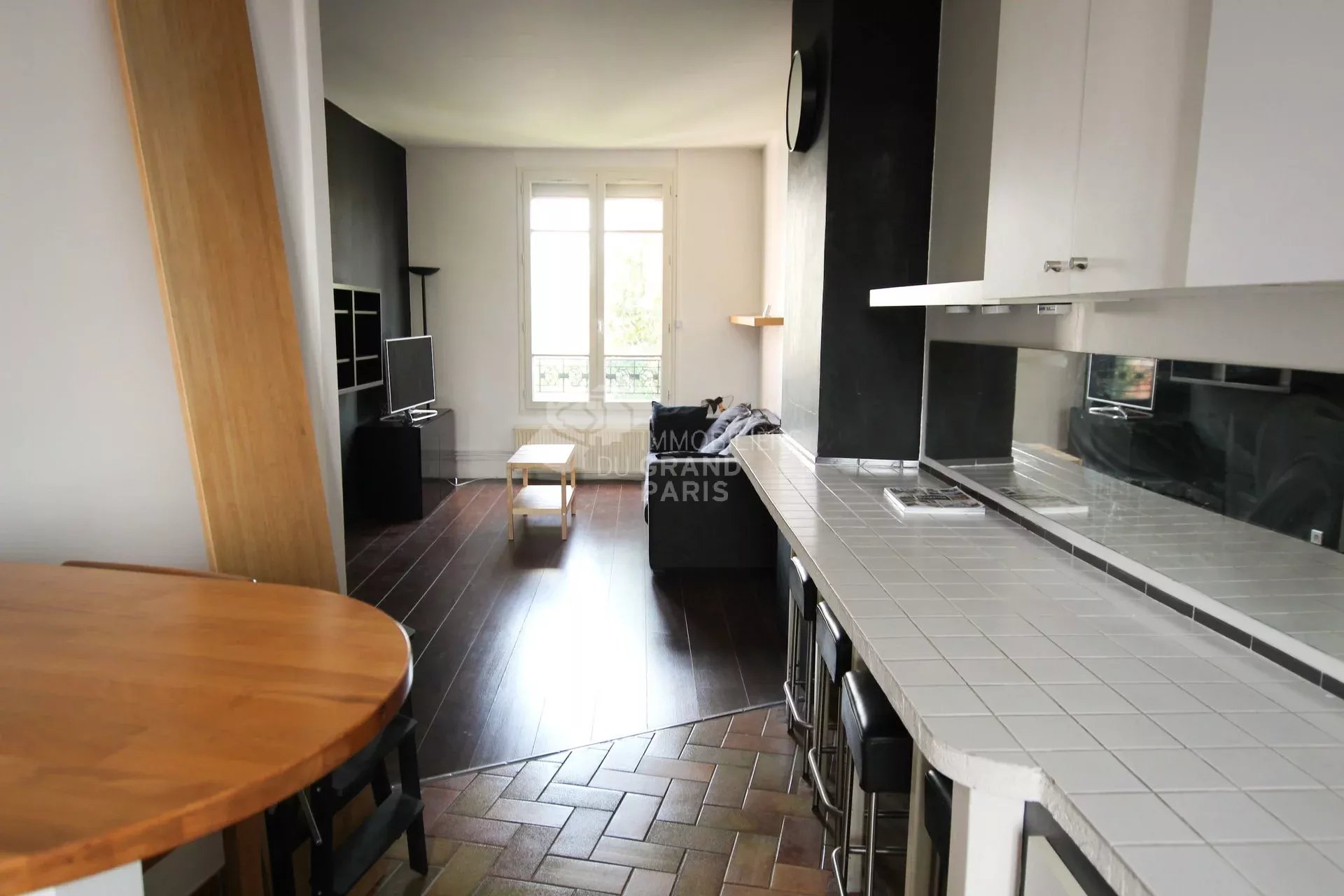 A Vitry sur Seine, proche des commodités, et du RER C , au deuxième étage d'un immeuble entretenu, vous trouverez un appartement meublé moderne de 2 pièces, de 43m², comprenant : une entrée, un séjour lumineux, avec cuisine ouverte équipée et aménagée, une chambre avec placard, une salle d'eau avec WC. De nombreux rangements.