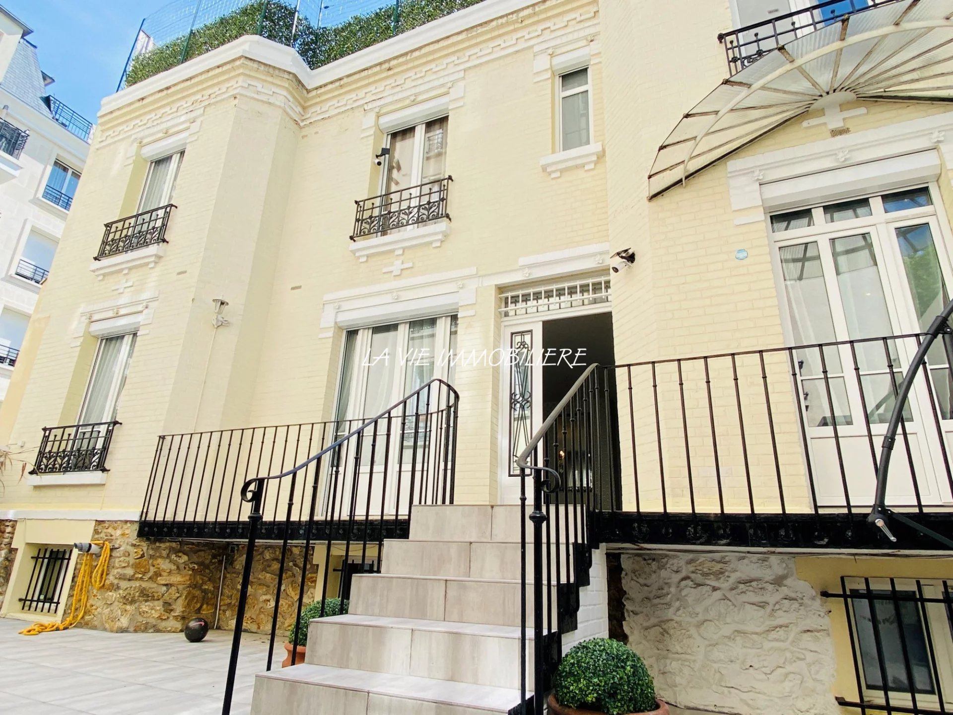 A 2 pas du Bois de Vincennes et des commerces. 94 SAINT MANDE. Exclusivité. Avenue Sainte Marie. Maison de Ville de 6 Pièces MEUBLEES en parfait état sur 3 niveaux située en fond de cour d'une surface 184m² habitable comprenant au RDC surélevé : un vaste séjour/salle à manger donnant sur un balcon, une cuisine aménagée donnant sur un balcon, un WC avec lave mains. Au 1er niveau : un palier avec de nombreux rangements, une suite parentale avec une salle de bains ouverte, 2 chambres avec rangements, une salle d'eau avec WC. A l'entresol : 2 Chambres, une salle de bains et un WC, rangements. Une buanderie/Chaufferie le tout d'environ 68m² et une toiture terrasse Plein Ciel d'une surface d'env. 77m². Chauffage et eau chaude : individuel gaz. Double vitrage et volets électriques. Très Calme donnant sur Cour privative d'environ 35m².libre de suite. loyer : 3.700 Charges Comprises dont 200,00 Euros de provisions pour charges (régularisation annuelle). Dépôt de garantie : 7.000,00 Euros. Honoraires Locataire : 2.760,00 Euros TTC (dont 552,00 Euros TTC pour état des lieux)