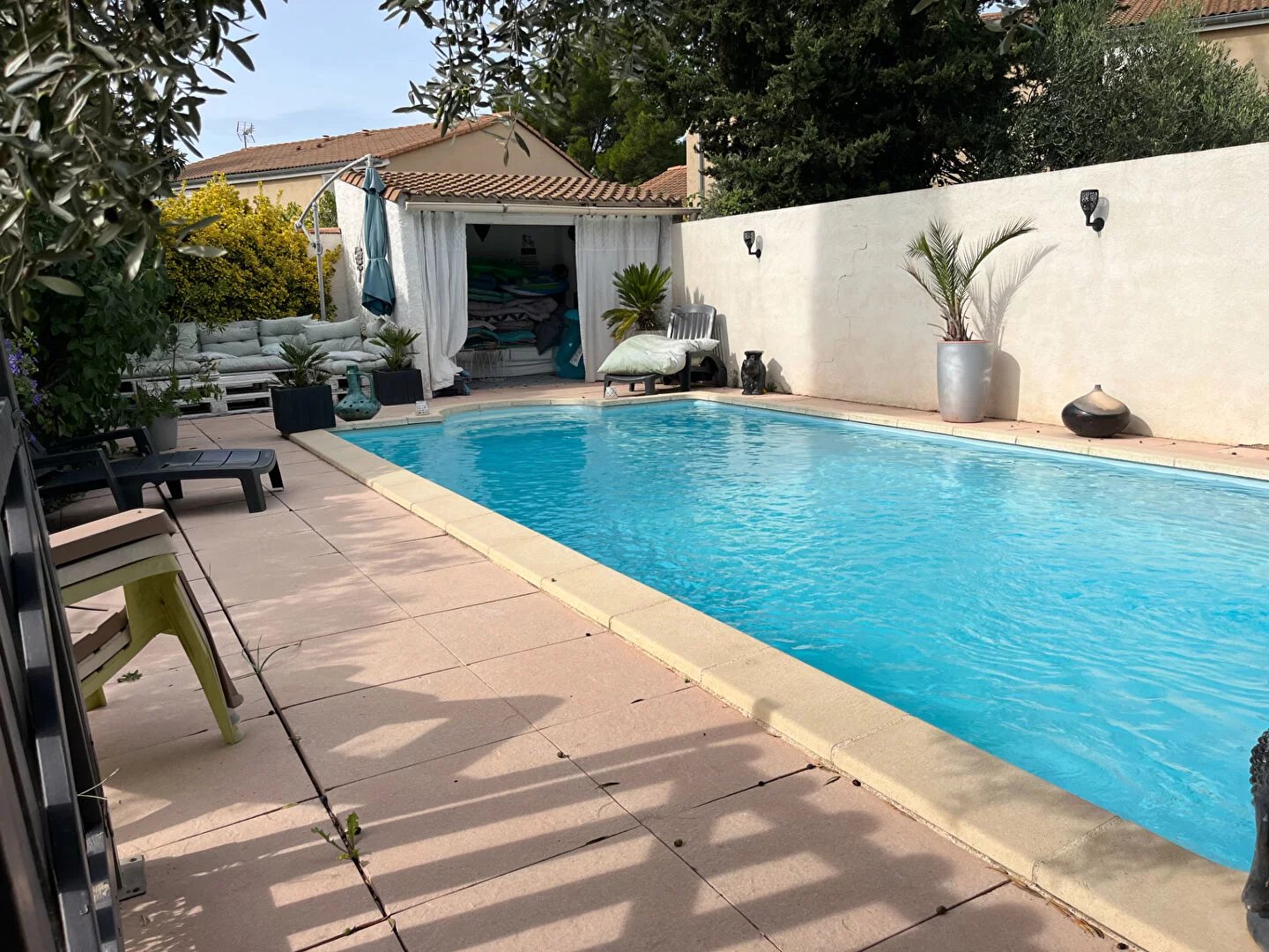 Rare à la location, cette maison avec jardin située dans une impasse au calme. Elle se compose au rdc d'un grand séjour climatisé avec cuisine toute équipée ouverte sur le séjour. Vous y trouverez également à l'étage 3 chambres avec placards, une salle de bain avec toilette ainsi qu'une suite parentale climatisée. A l'extérieur, profitez d'un beau jardin cloturé, arboré avec piscine et terrasse ainsi qu'une buanderie et un garage entièrement isolé pouvant faire office de bureau. Un bien idéal pour celles et ceux qui recherchent un logement clé en main dans un environnement calme et agréable. Libre 01/11/2025 Loyer : 1600 euros Caution : 1600 euros Frais d'agence : 1300 euros