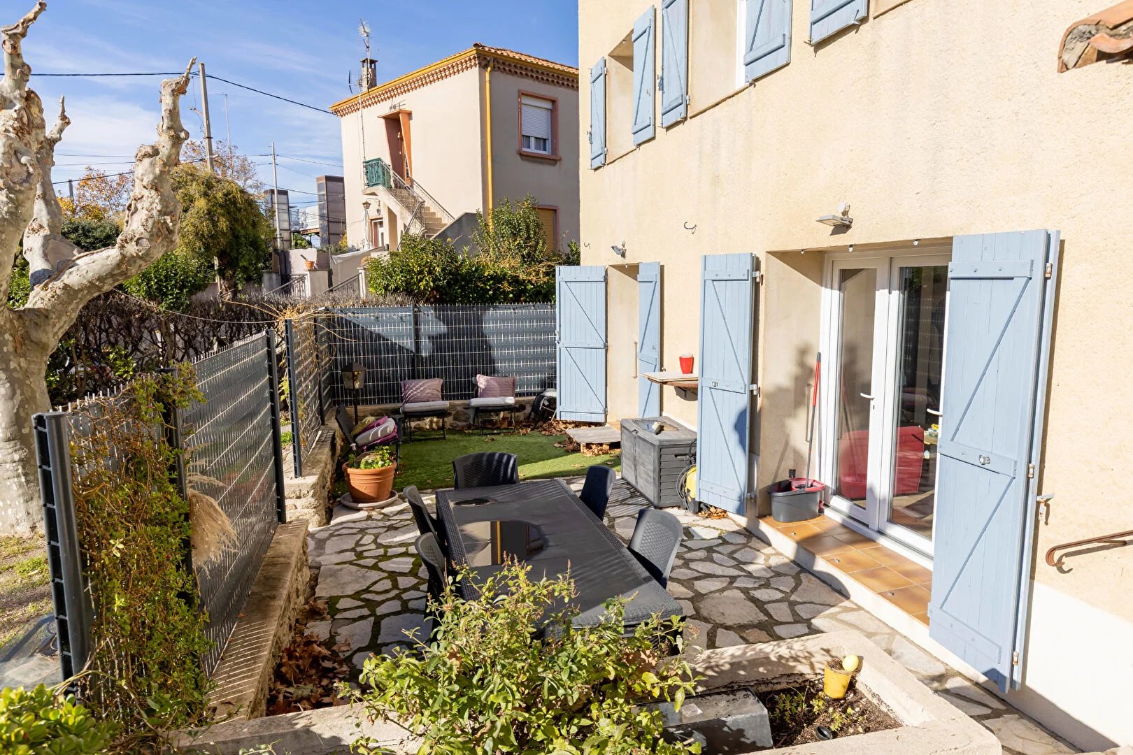 Istres , nouveau prix a 265.000 euros ... a saisir !!! a deux pas du centre-ville bas de villa 68m2 habitable avec terrasse sud de 45 m2 sur une parcelle arborée de 200m2 parking 2 voitures et motos il se compose d'un hall d'entrée desservant une pièce de vie avec cuisine équipée aménagée ouverte sur salon d'une chambre indépendante avec accès terrasse, l'espace nuit avec 2 chambres et salle d'eau wc, l'ensemble climatisé et fenêtres db 2025 pour votre confort une cave attenante de 35m2 pouvant servir de salle de jeux , cinéma et rangement , le charme d'une villa provençale avec le confort d'un appartement moderne deux magnifiques platanes centenaires en guise de parasols naturel une superbe et rares opportunités a saisir !!! Copropriété de 3 lots - dont 3 lots habitation. Charges annuelles : 450 euros. Pierre LAVIALLE (EI) Agent Commercial - Numéro RSAC : - .