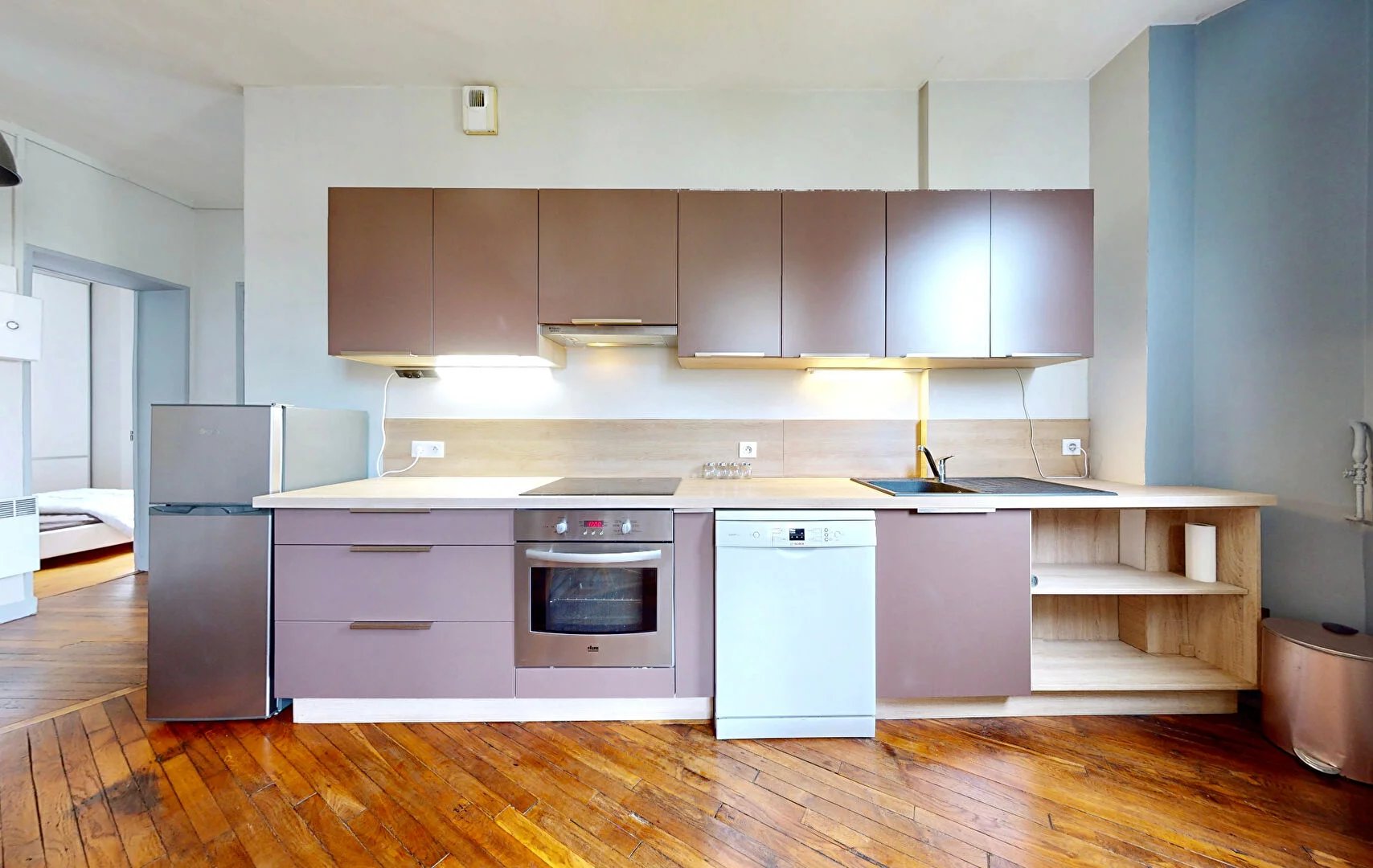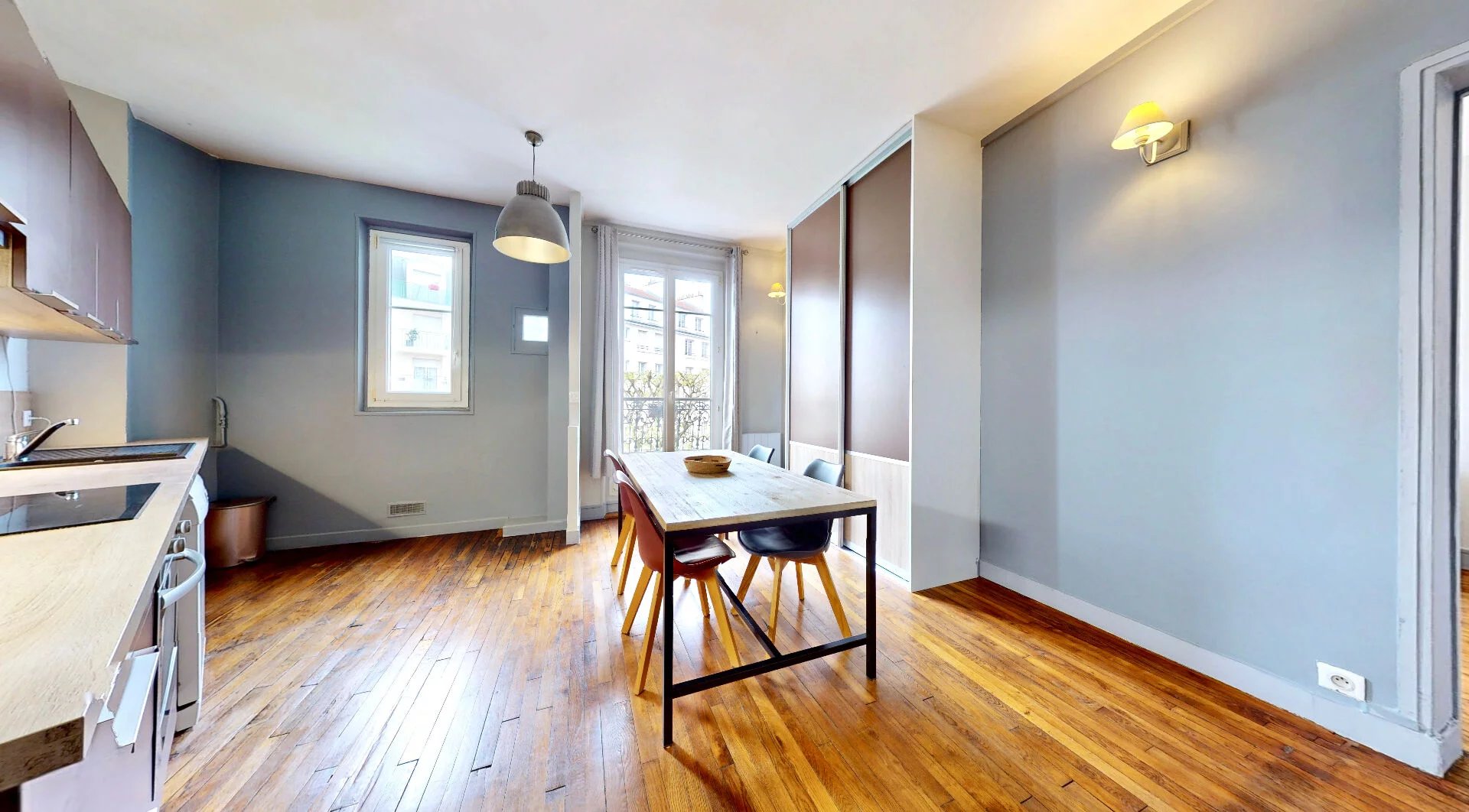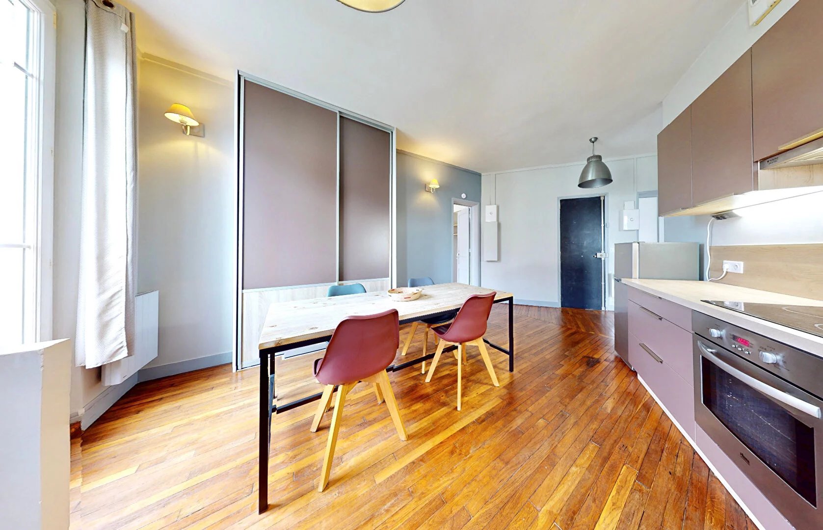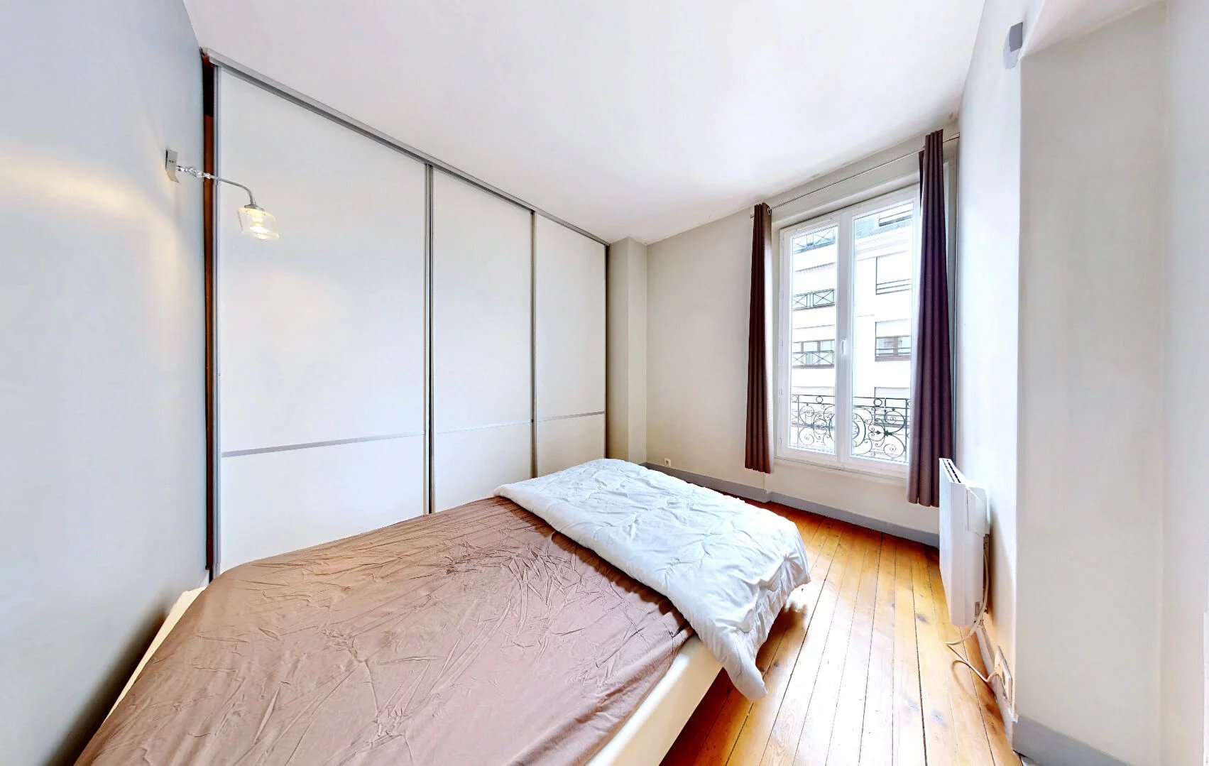 Emplacement central permettant de nombreux déplacements à pied : à 5 min des commerces de la rue Voltaire, à 9 min du marché.