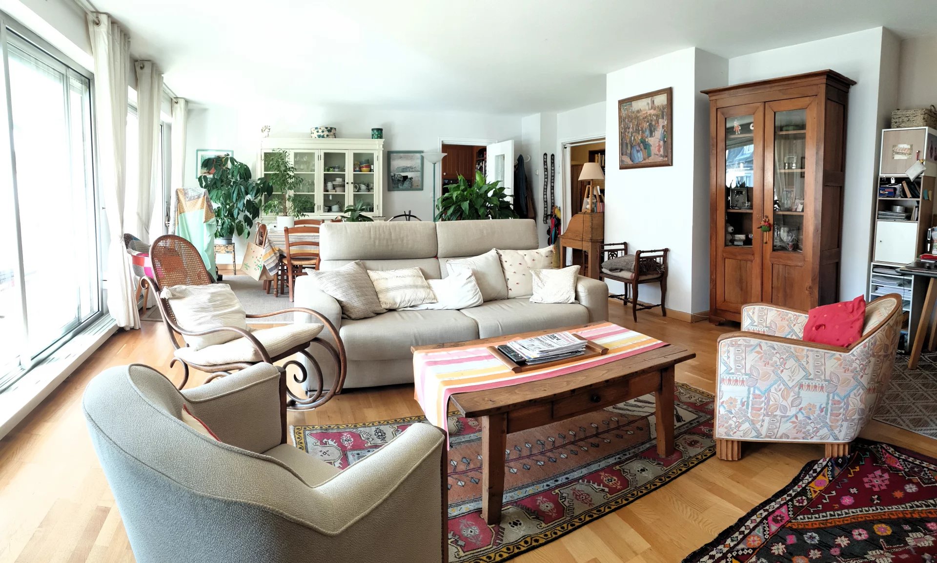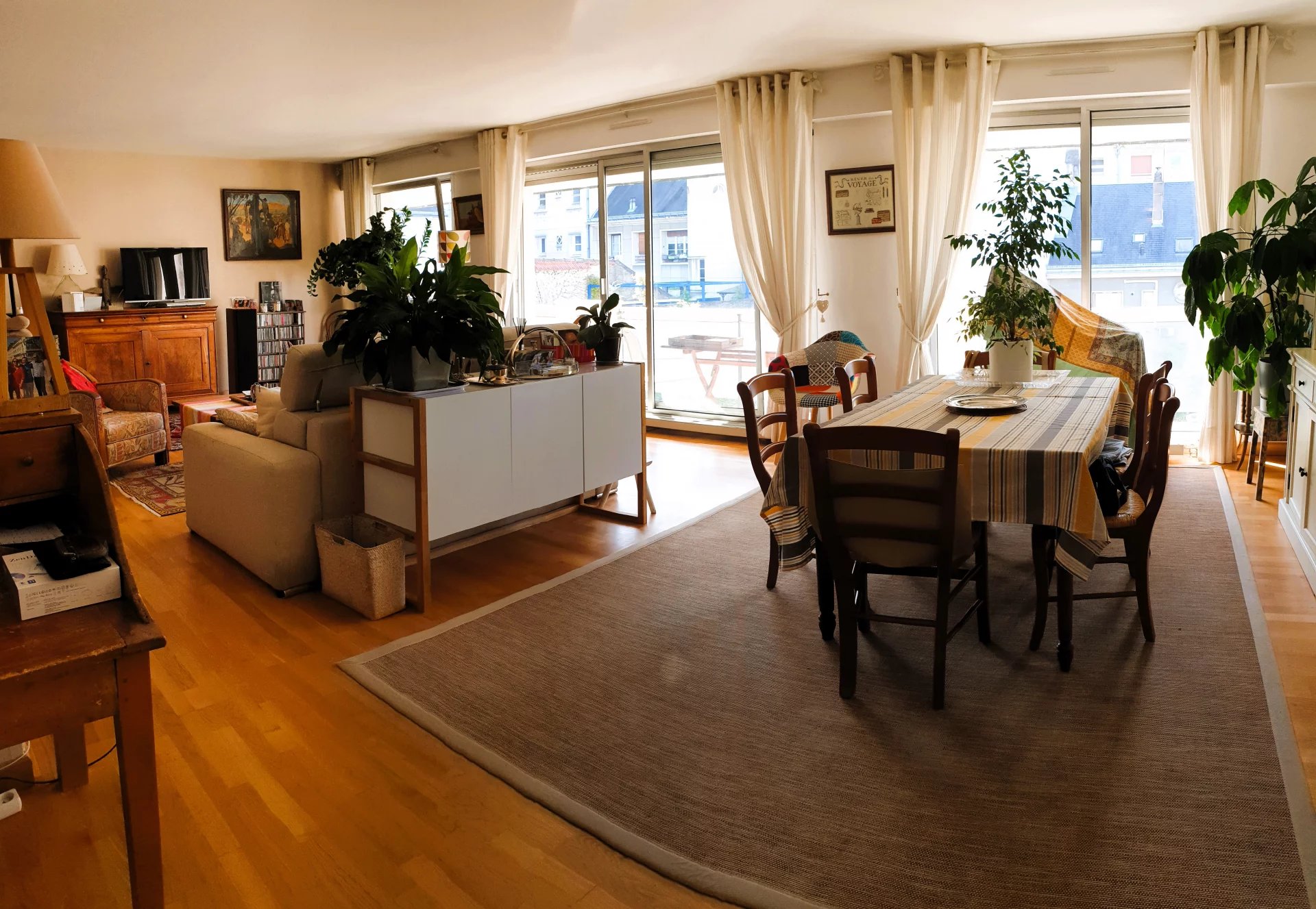 Dans résidence sécurisée, un appartement de type 4/5 pièces comprenant : entrée, grand séjour double de 46 m² donnant sur la baie vitrée avec balcon sud, cuisine indépendante aménagée, dégagement avec placard, trois chambres avec balcons, dressing-buanderie, WC séparé, salle d'eau. Une cave. Un emplacement de parking et un box en sous-sol. Copropriété de 31 lots principaux. Montant annuel de la quote-part de charges courantes : 3058 euros. Pas de procédure en cours menée sur le fondement des articles 29-1 A et 29-1 de la loi n°65-557 du 10 juillet 1965 et de l'article L.615-6 du CCH. Les informations sur les risques auxquels ce bien est exposé sont disponibles sur le site Géorisques : georisques.gouv.fr. Ici, honoraires charge acquéreur : C'est + de transparence, donc des honoraires maîtrisés, et des frais de notaire moindre !