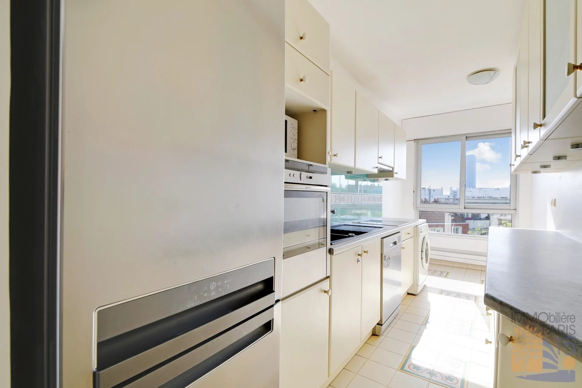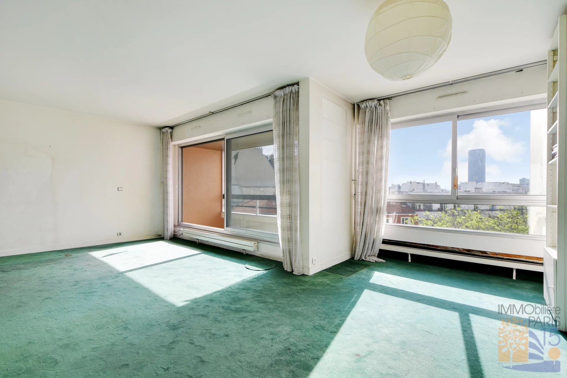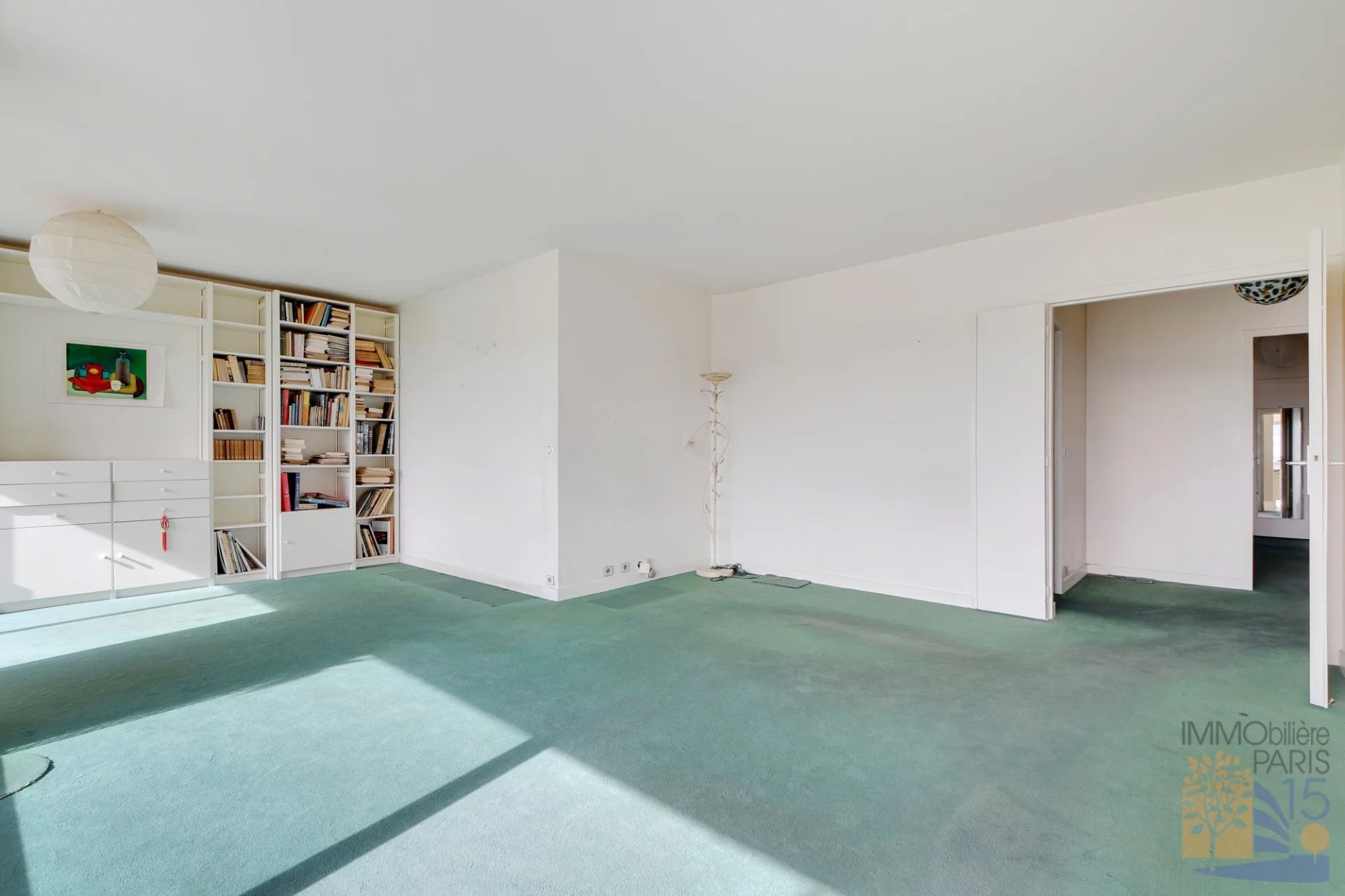 L'Agence Immobilière Paris 15 vous propose en exclusivité dans la résidence Armonial au 7ème étage un magnifique cinq pièces de 116.19 m2 sur 11,37 m2 de loggias comprenant une belle entrée avec rangements et WC indépendant, un séjour/salle à manger de 35 m2 (ou 4ème chambre) sur une loggia exposée Sud Est, une cuisine dinatoire, trois chambres dont une suite parentale de 15 m2 avec sa salle d'eau, sur loggia plein Sud Ouest, salle de bains, deuxième WC, dressing, penderies, vues très dégagées, parfaitement au calme, belles prestations tout proche du métro et des commerces, cave, 2 parkings possibles en plus (dont 1 avec borne de recharge électrique) à 25.000EUR l'unité. Ravalement terminé cette année.