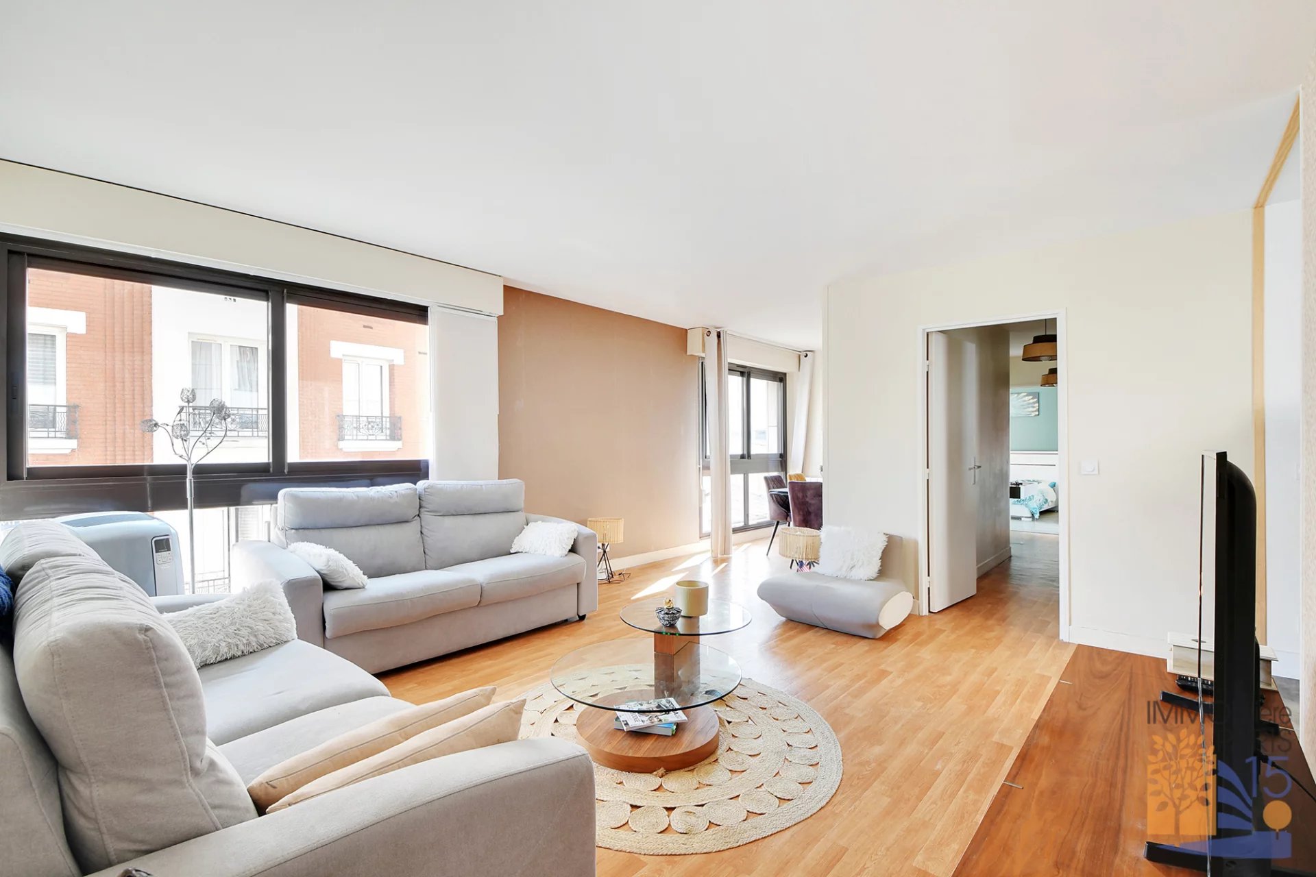 L'Agence Immobilière Paris 15 vous propose dans un immeuble récent de 1995 ce bel appartement familial de cinq pièces au 3ème étage avec ascenseur, appartement de 89.10 m2 parfaitement agencé, comprenant une entrée, un séjour, une salle à manger (ou quatrième chambre), une cuisine équipée, trois chambres, une salle de bains, une salle d'eau avec WC, un balcon, appartement clair et calme à proximité des commerces et des transports, box et cave intégrée au box en sous-sol.