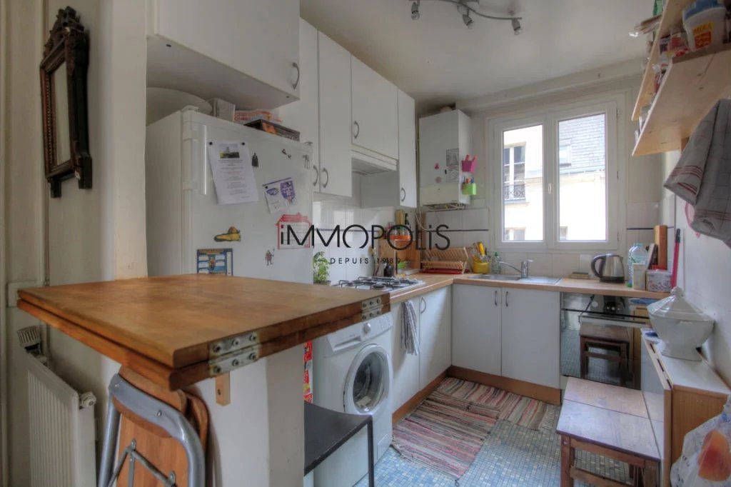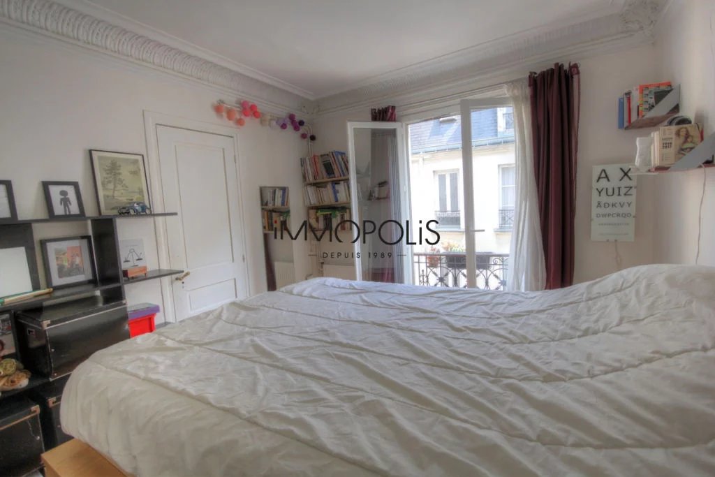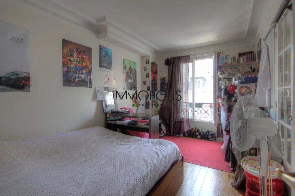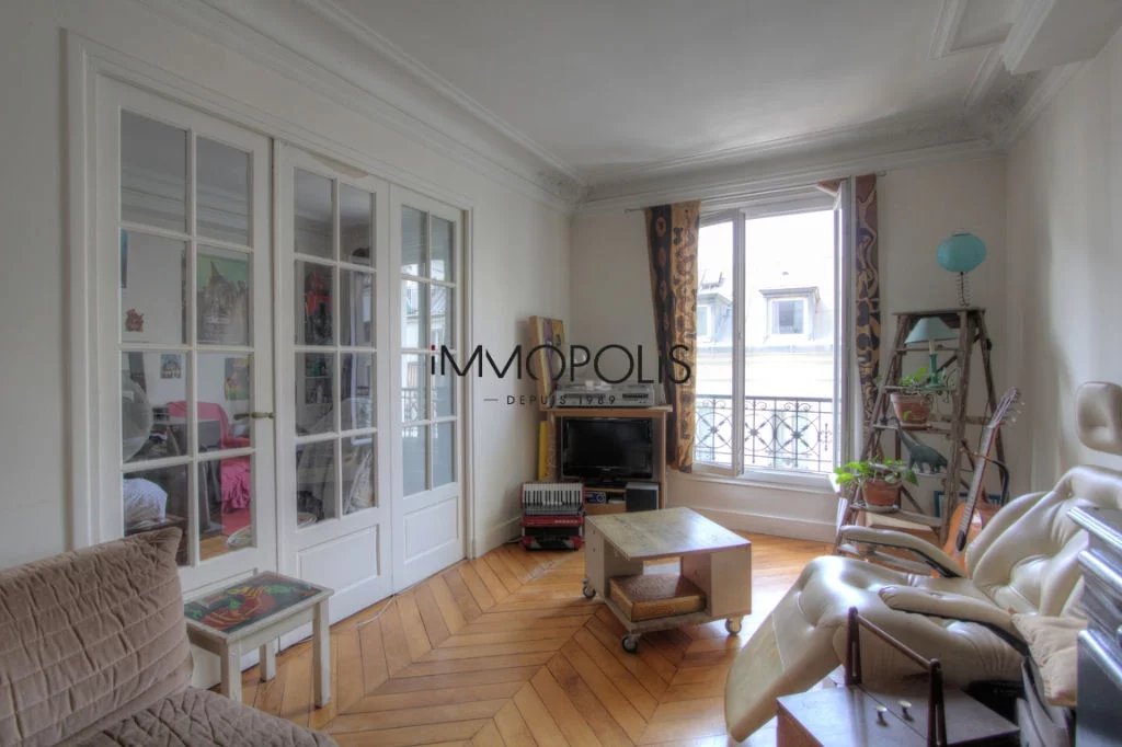 Montmartre, rue Ganneron, IMMOPOLIS vous propose en exclusivité ce beau 3 pièces de 55.21 M² environ avec un bon plan en étoile. Il se compose d'une entrée, d'un séjour, d'une chambre sur rue, d'une chambre sur cour avec dressing, de WC séparés, d'une salle de bains, d'une grande cuisine ouverte sur l'entrée. Le tout en bon état, avec parquet et moulures, clair et calme et sans perte de place. Chauffage individuel au gaz très économique. Cet appartement dispose d'une cave. A visiter très vite ! (4.00 % honoraires TTC à la charge de l'acquéreur.) Copropriété de 49 lots (). \n\r Charges annuelles : 1732.08 euros.