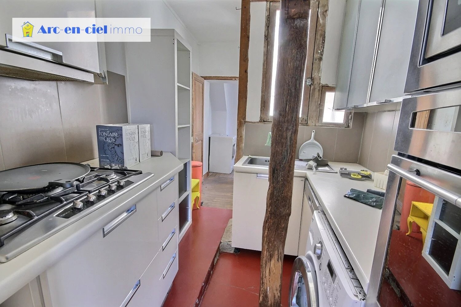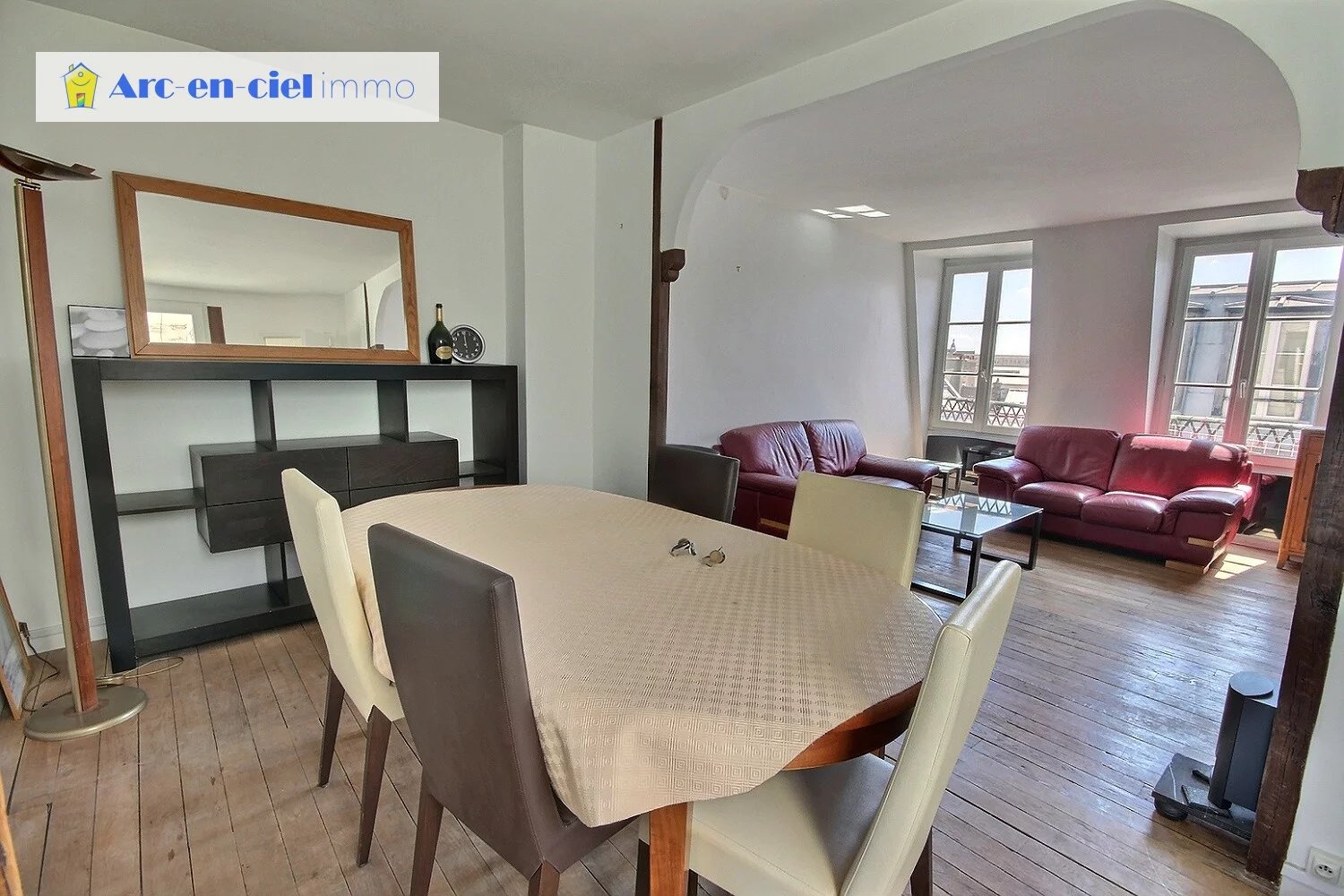 Place Dauphine. Immeuble XVII ème siècle réhabilité. Appartement en duplex au 3ème et 4ème étage avec ascenseur comprenant: au 3ème étage; grand salon et salle à manger. Cuisine équipée. wc, buanderie. Au 4ème étage, 2 chambres avec rangeme ...