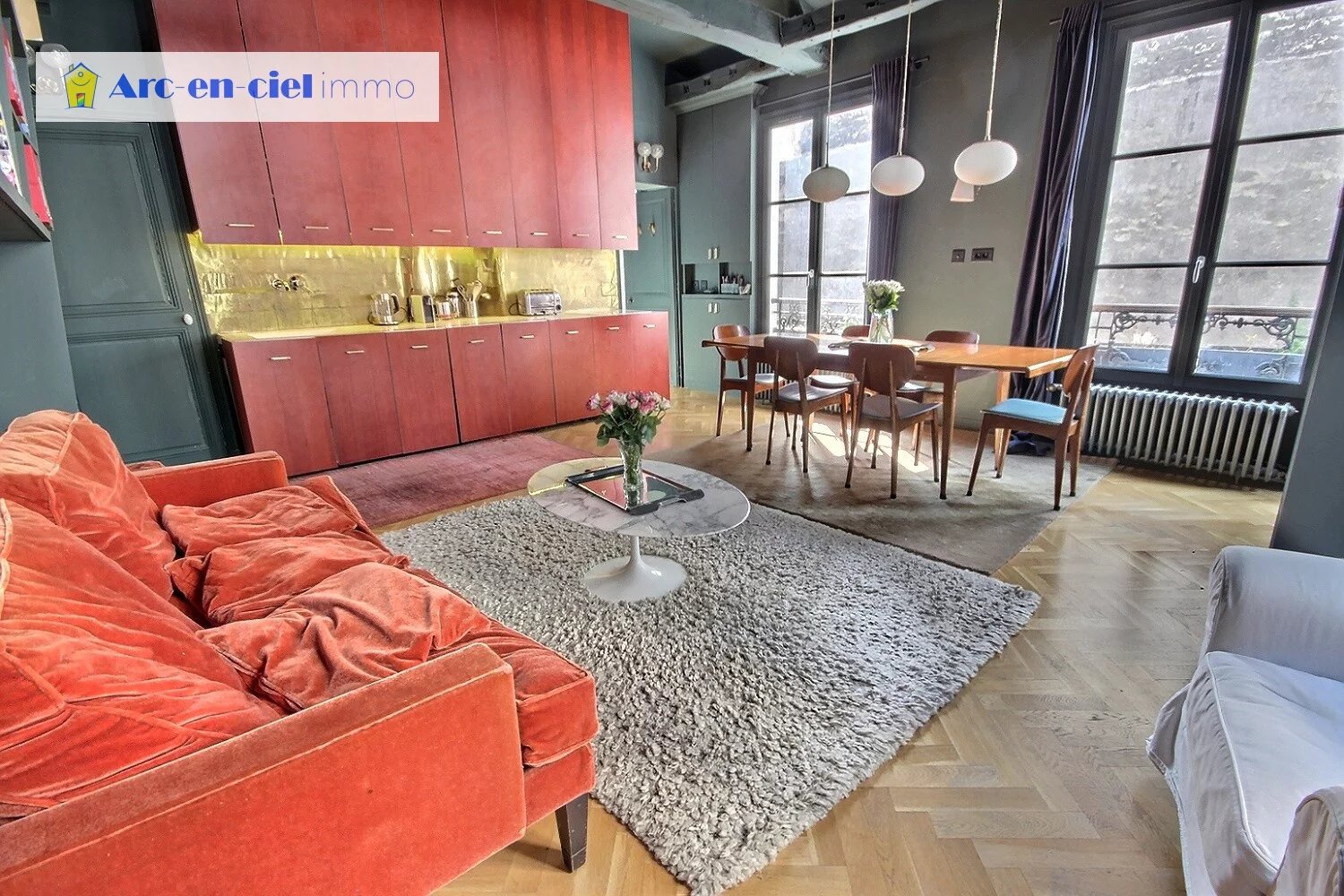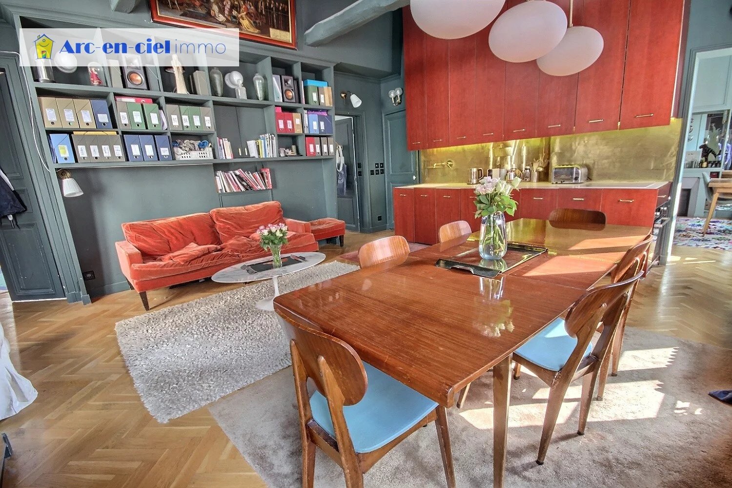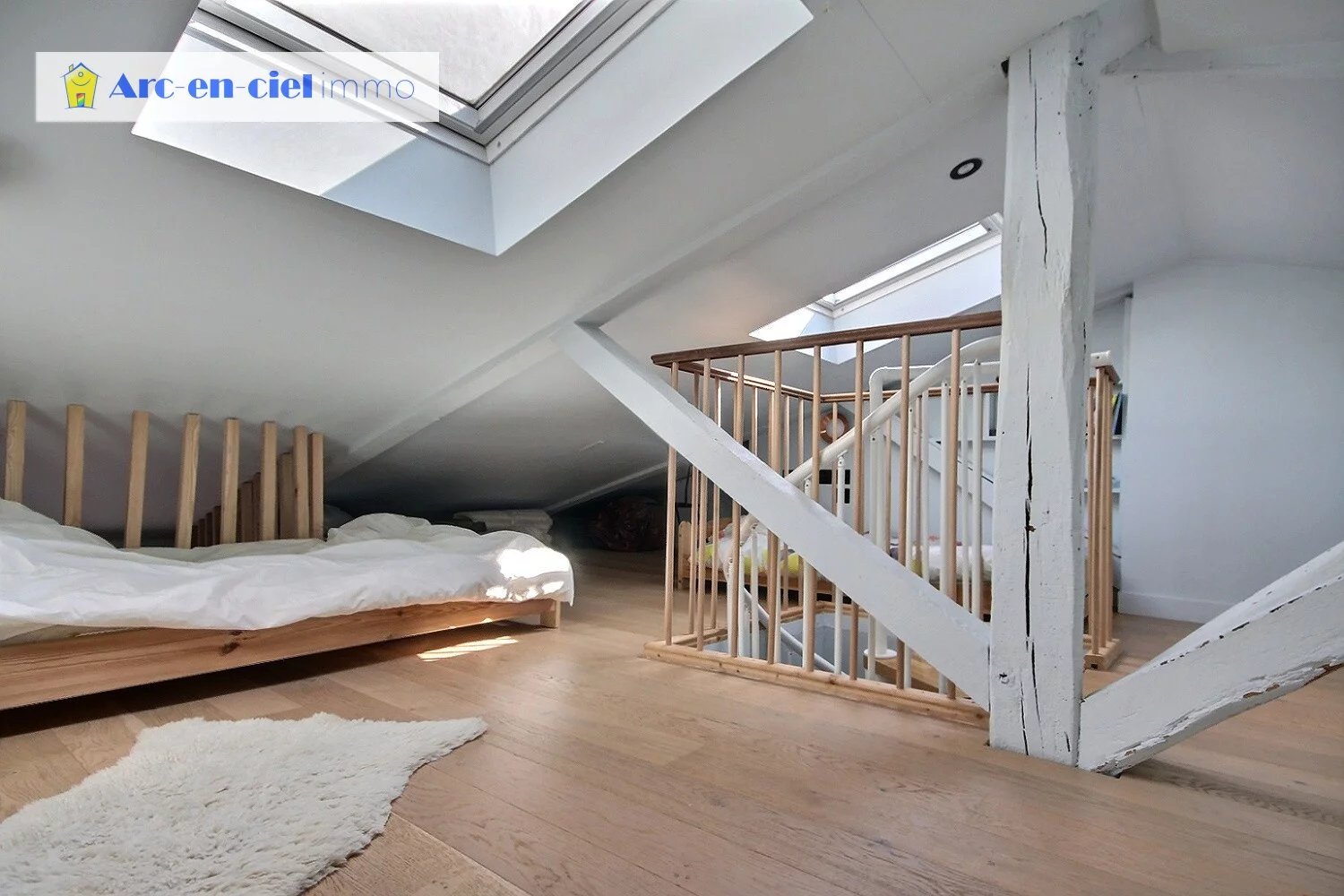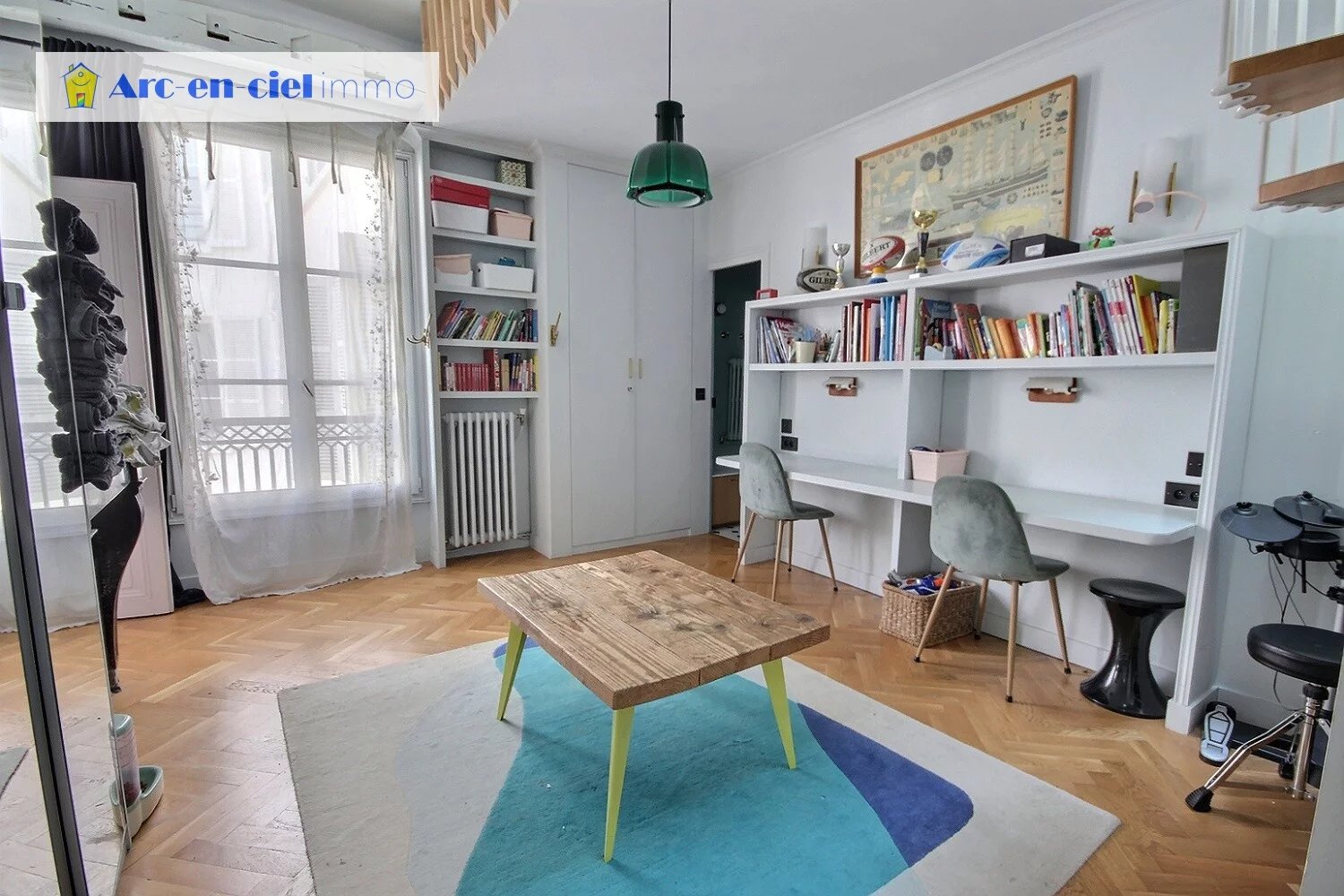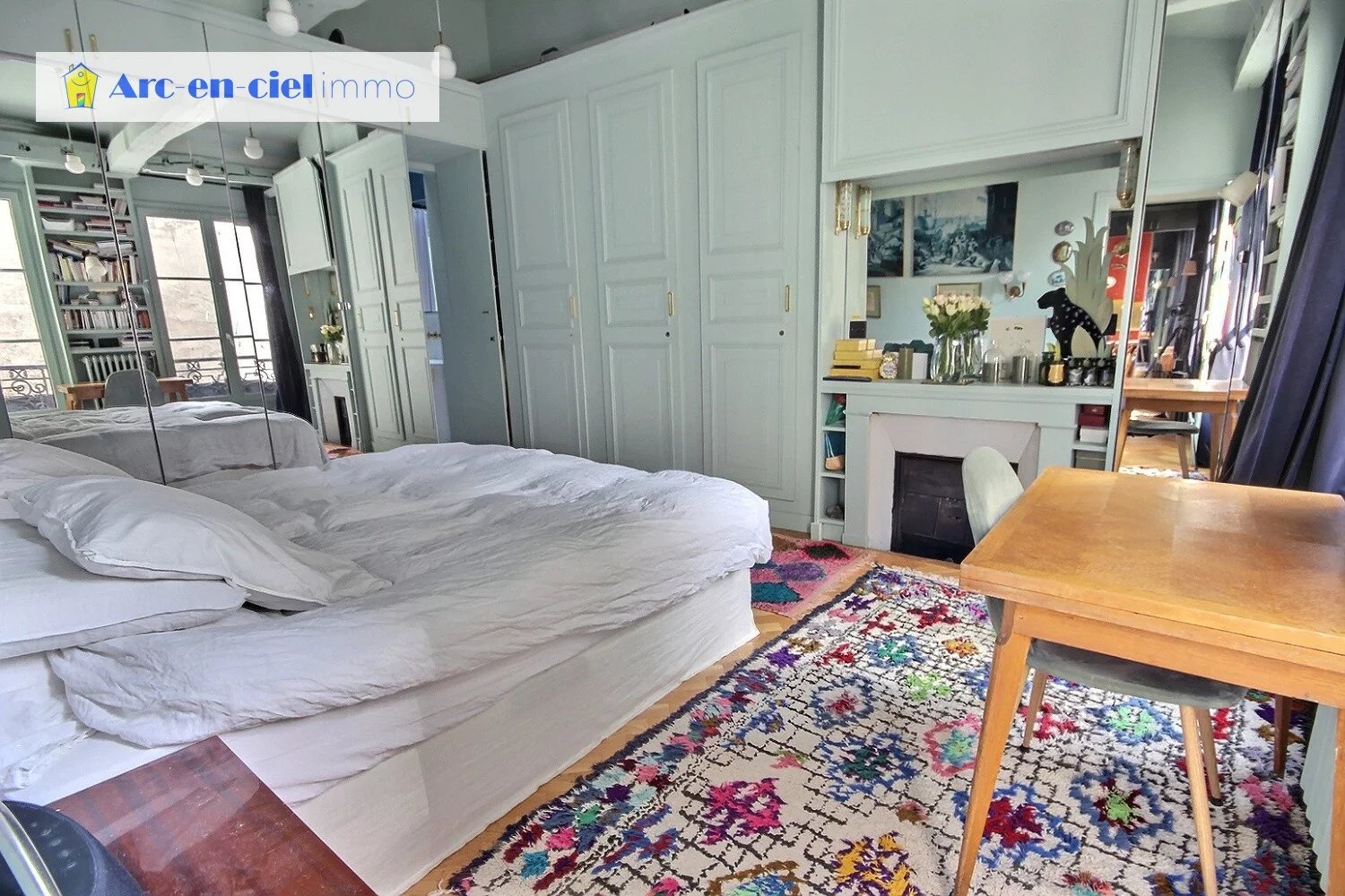 DUPLEX à proximité de la Place de la République, côté Paris 3ème HAUT MARAIS, au 3ème et dernier étage SANS ascenseur, seul sur le palier, sur 2 cours paysagées au calme. il comprend : séjour avec cuisine US de 31m2 avec très grande hauteur sous plafond et possibilité de mettre mezzanine et des velux pour augmenter la lumière (demande faite à la copropriété en cours), Salon ou chambre 1 de 20m2, avec une mezzanine de couchage de 14m2 au sol (moins de 1,80m de hauteur sous plafond dans les combles), Chambre 2 de 18m2 avec sa salle de bains WC et avec une mezzanine de couchage de 21.5m2 au sol (moins de 1,80m de hauteur sous plafond dans les combles), les 2 mezzanines se rejoignent et ont chacune leurs escaliers descendant à la pièce dessous. 3ème chambre parentale de 19m2 avec belle hauteur sous plafond, avec sa salle d'eau et 2ème WC. Plan 'comme un carré divisé en 4', pas de couloir dit 'A la Française'. Surface au sol 132.11m2 dont 93.12m2 Carrez (la différence les 39m2 non Carrez sont les 2 mezzanines et sous escaliers que nous avons pondérés à 1/3, soit 106m2 pondérés habitables). ATYPIQUE mais RATIONNEL, nombreux rangements. Double exposition SUD et Nord, fenêtres en double vitrage et oscillo-battantes, chauffage individuel au gaz.
