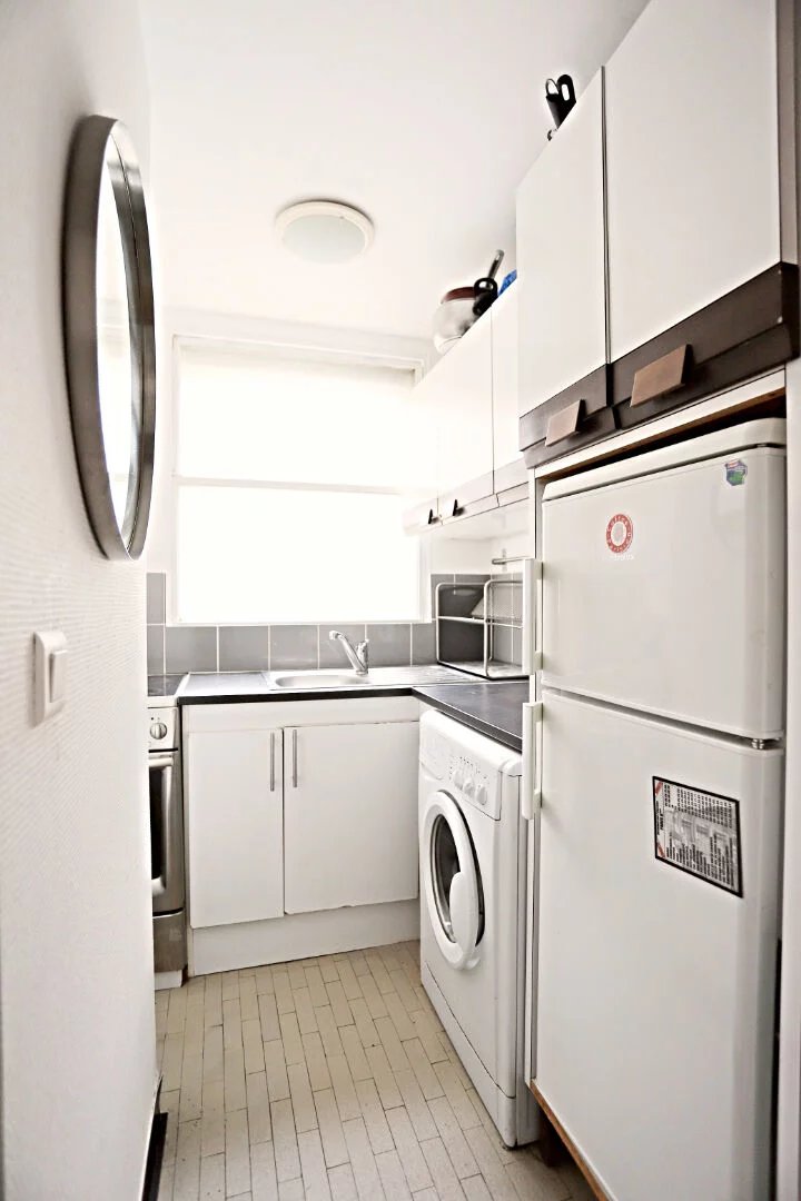 Réf : 86231456Proche du Théâtre de l'Odéon et du Luxembourg. Immeuble XIX ème siècle. 5ème étage sans ascenseur. Appartement de charme en parfait état, au dernier étage comprenant: entrée, séjour avec cuisine américaine équipée. Chambre avec rangements. ...