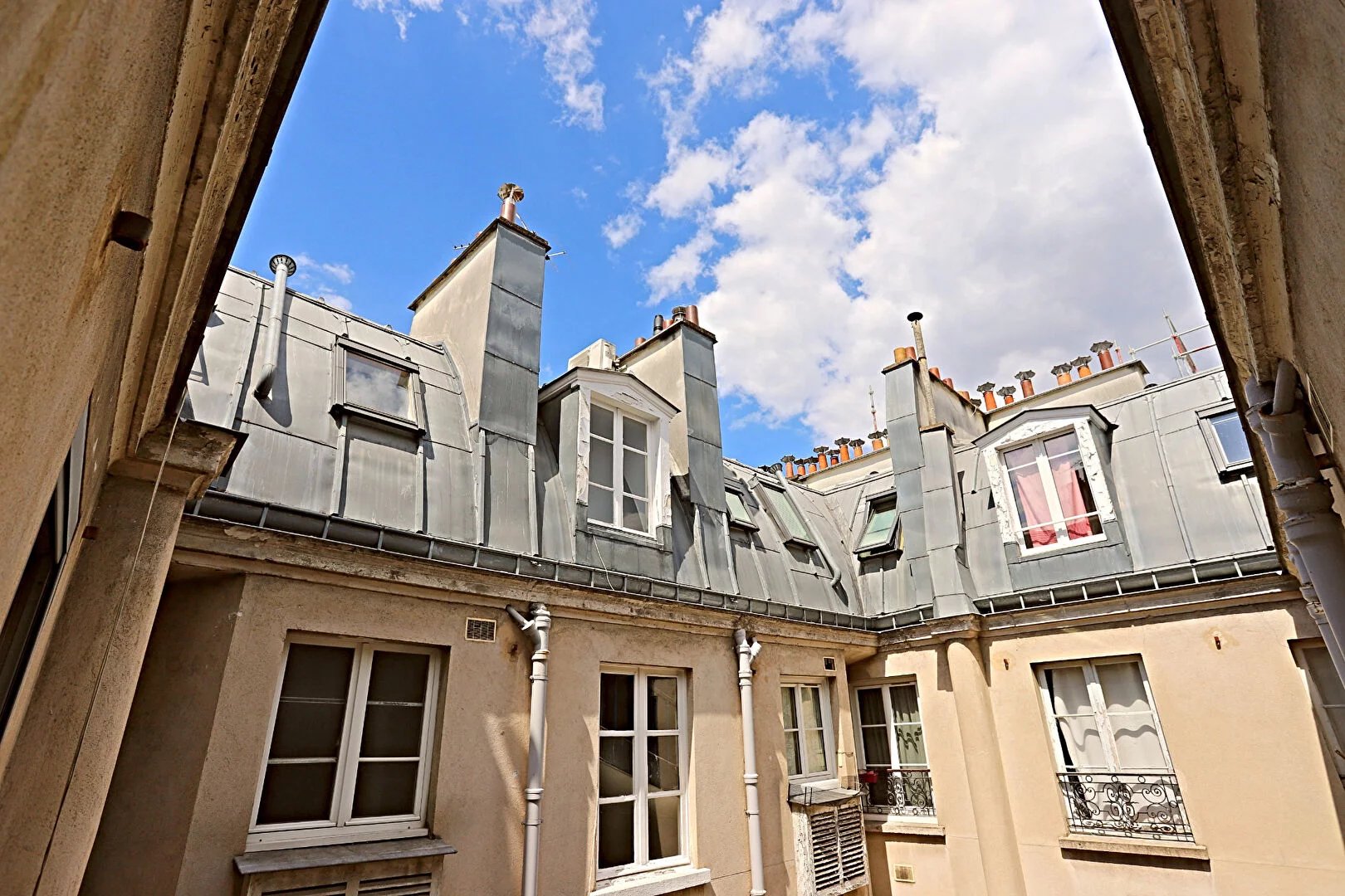 Exclusivité rue de l'Eperon, appartement 2 pièces donnant sur cour, plein ciel calme et lumineux, d'une superficie de 24,25m² Carrez, comprenant un séjour avec cuisine ouverte, une chambre, salle de douche avec wc et cave au sous-sol. Faib ...