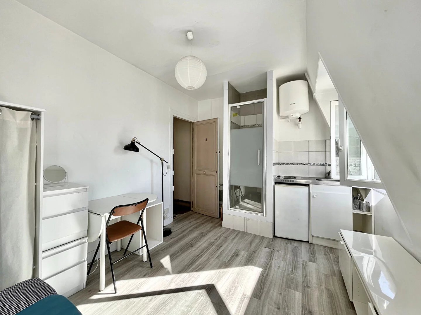 Réf : 86079777Chambre de service au 6 ème et dernier étage dans un bel immeuble idéal investissement, bureau, boites aux lettres, ou RbNb. En très bon état, fraichement rénové, peinture, moquette, électricité, radiateur à bains d'huile, Vélux. Les toil ...