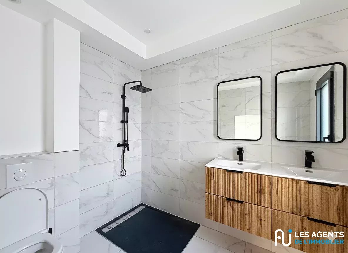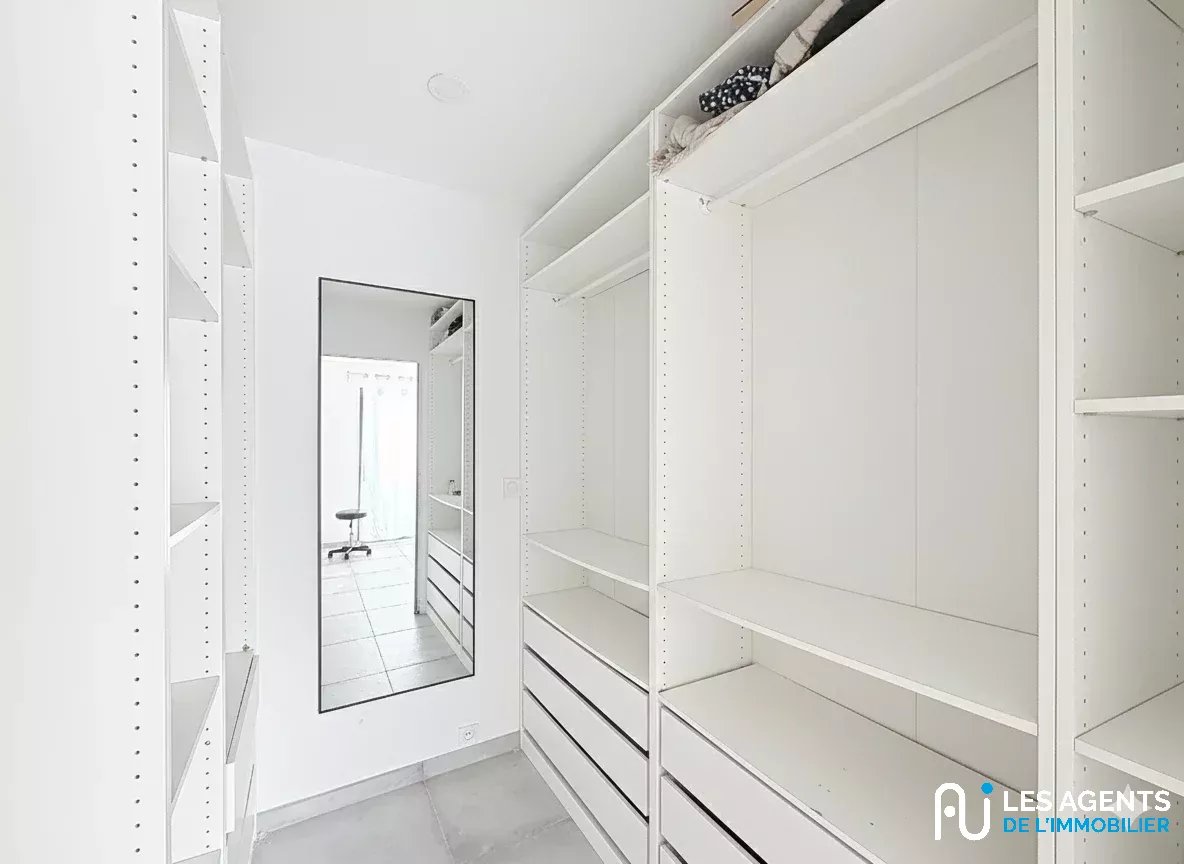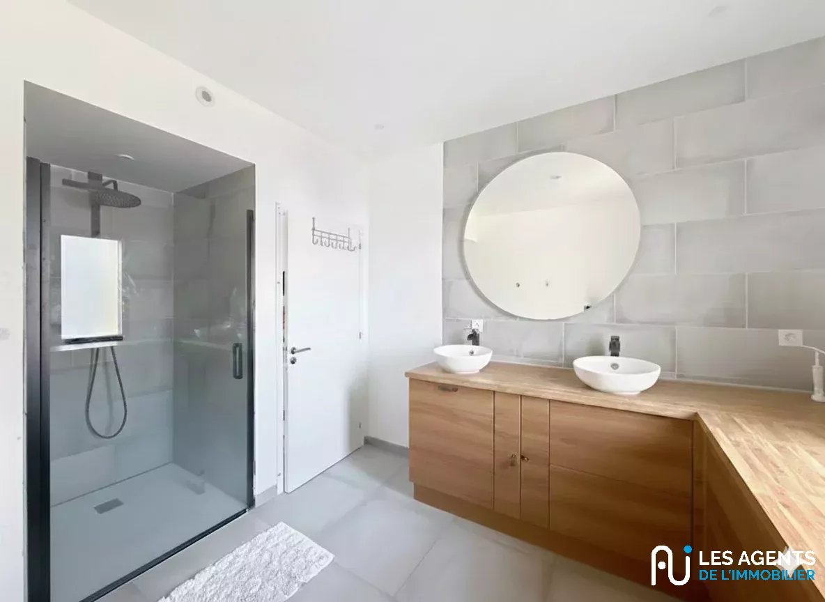 Le coin nuit a été pensé pour le confort de toute la famille. Il se compose de trois chambres, dont une suite parentale complète bénéficiant de son propre dressing et d'une salle d'eau privative. Une seconde salle d'eau indépendante vient parfaire l'agencement de cette maison, offrant ainsi une organisation fluide et pratique au quotidien.