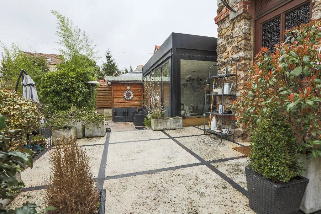 Immopolis vous propose en exclusivité cette maison situé à 15 minutes à pied du centre ville et des commerces de Chatou. L'entrée se fait par le jardin arboré et fleuri de 300 m² avec une terrasse de 20 m² ou par une entrée directe sur le parking couvert d'une capacité de 2 voitures et 3 motos. La maison se compose d'une cuisine ouverte sur le séjour profitant d'un accès sur le jardin avec ses grandes baies vitrées. Au rez de chaussé se trouve également, une suite parentale avec dressing et salle de bains et douche, ainsi qu'un WC indépendant. Au premier étage, vous trouverez une chambre, une salle d'eau avec WC et une seconde pièce bureau aménageable en chambre. Au second niveau est aménagée une grande chambre de 30 m² avec rangements intégrés. Un accès direct au sous-sol aménagé est présent depuis la cuisine. La maison est en excellent état et présente des matériaux de qualité. Une extension est possible au premier étage de 50 m² environ. (1.69 % honoraires TTC à la charge de l'acquéreur.)