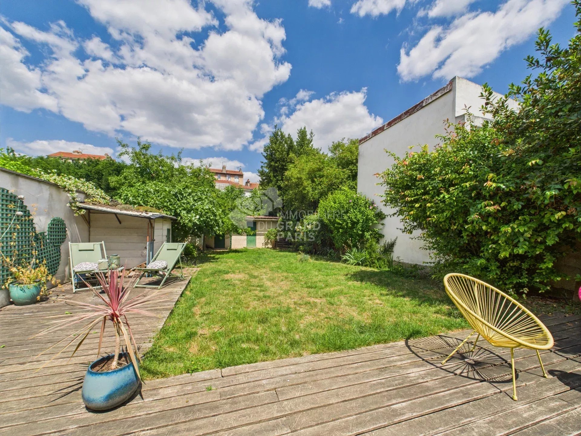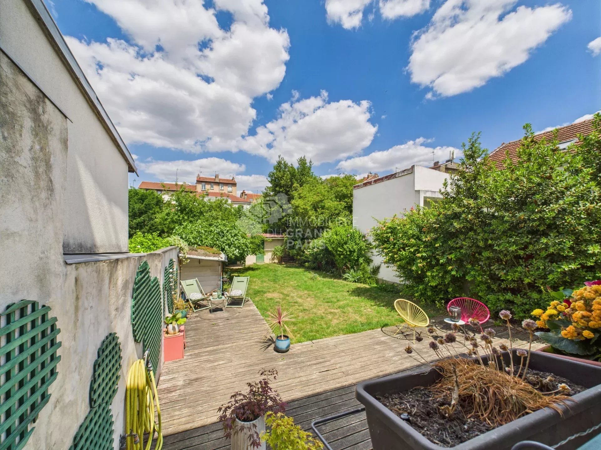 Le jardin de 300 m² est un vrai havre de paix, ouvert uniquement sur d'autres jardins. Grâce aux accès directs depuis plusieurs niveaux, on a vraiment l’impression d’être à la campagne en plein centre-ville, sans aucune nuisance.