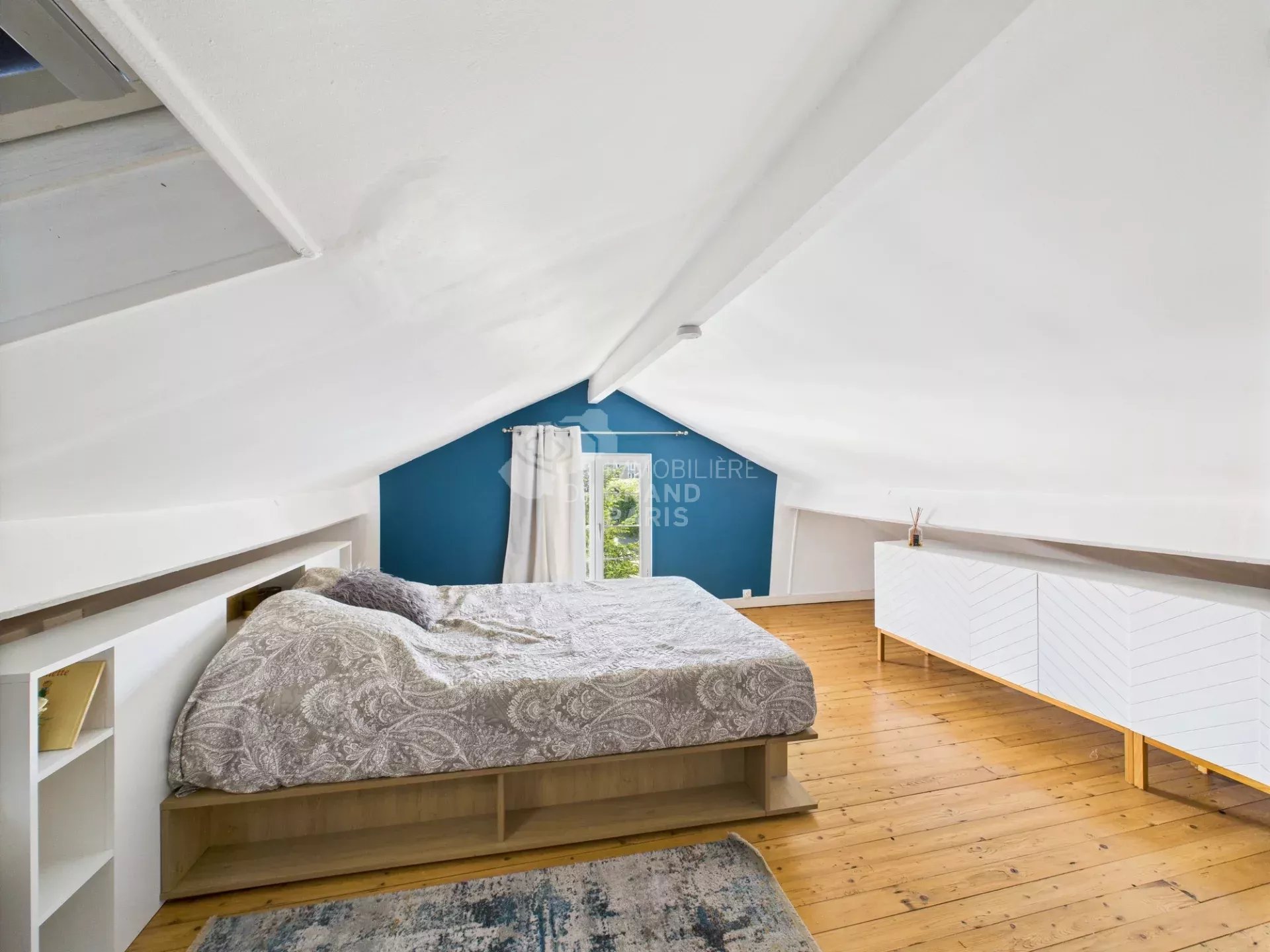Elle fait 99 m² loi Carrez, environ 140 m² habitables, sans compter un garage de 16 m² chauffé et carrelé, ainsi qu’un local indépendant de 17 m² très pratique (possibilité atelier ou futur studio). Le tout sur un jardin arboré de 300 m², sans aucun vis-à-vis.