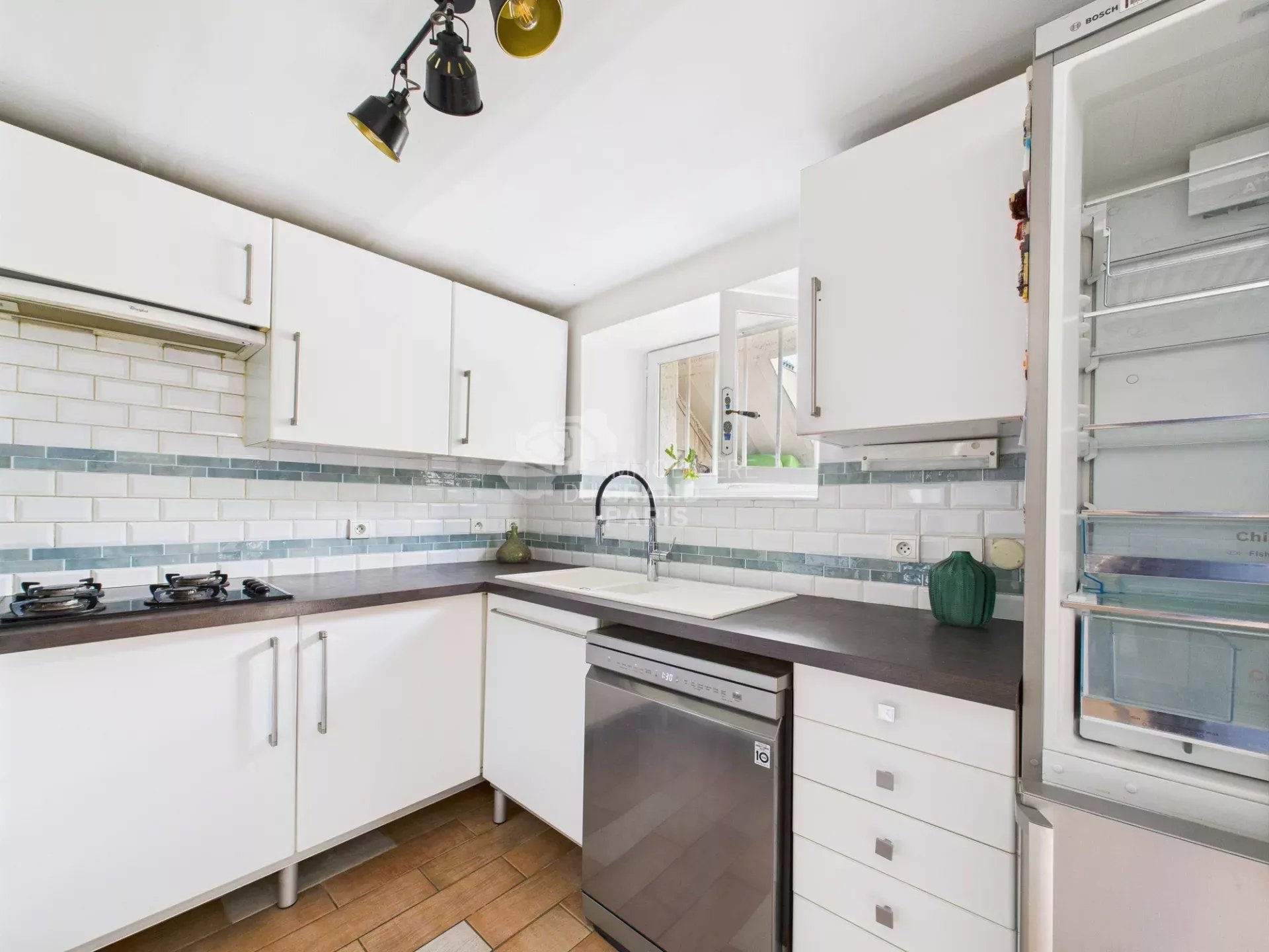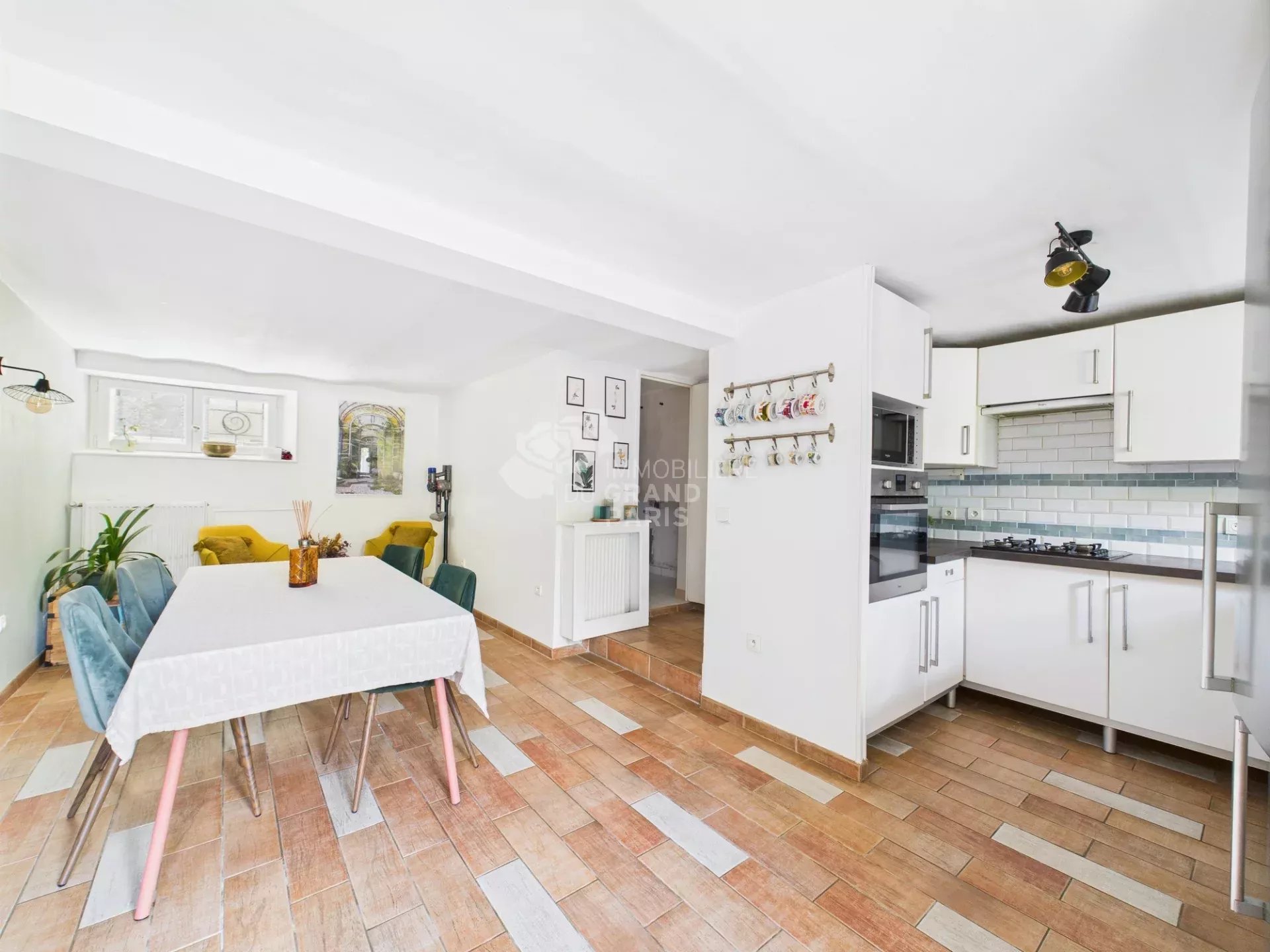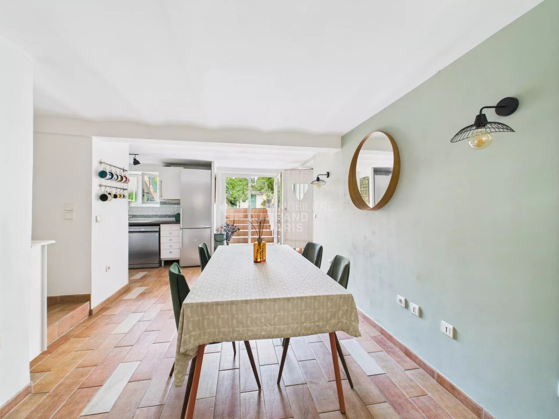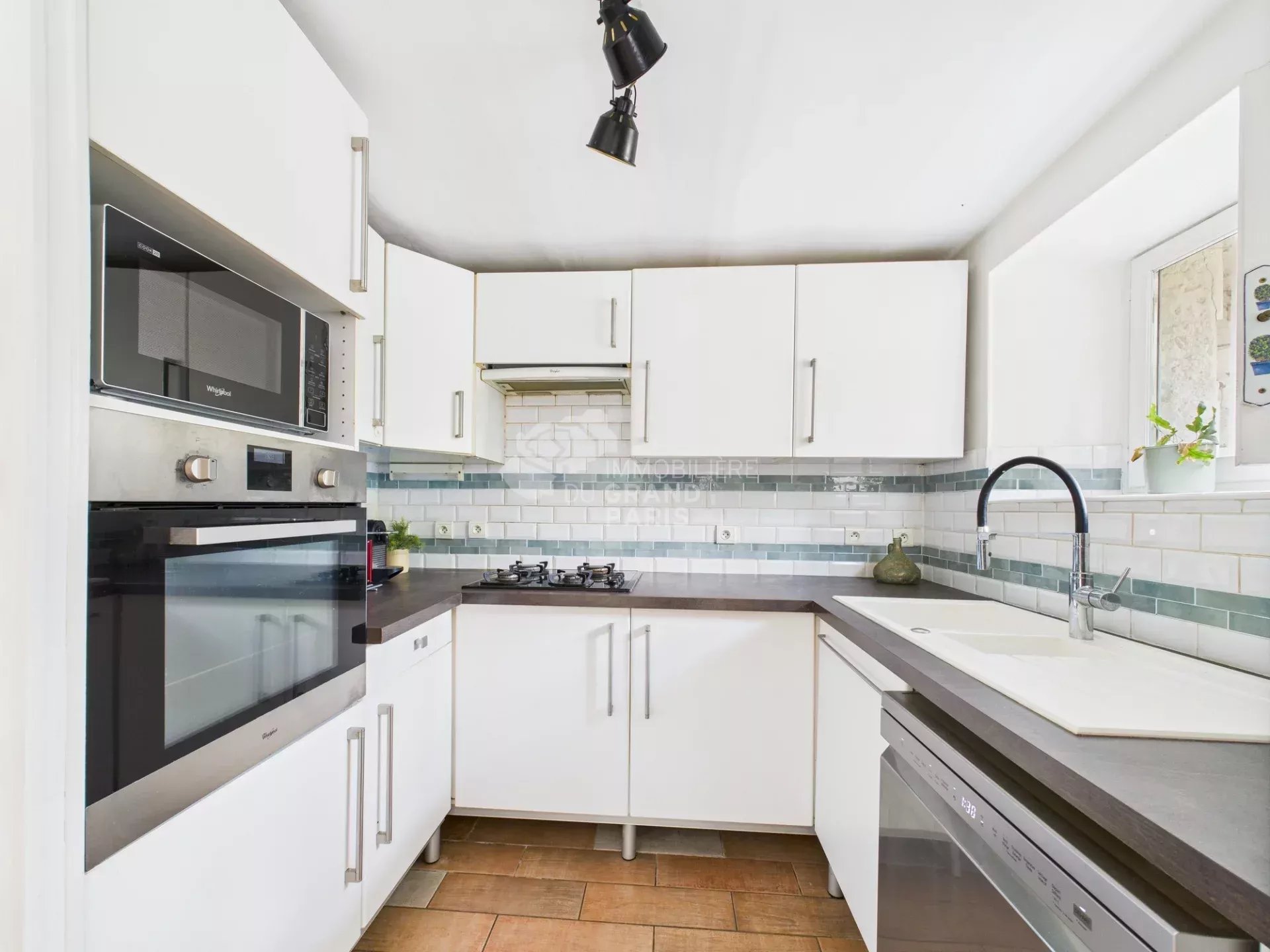 Rez-de-jardin : un second espace de vie de 30 m², avec salle à manger et cuisine entièrement équipée. Une salle d’eau / buanderie rénovée récemment permet d’optimiser l’espace. Ce niveau donne aussi sur le jardin et le garage.