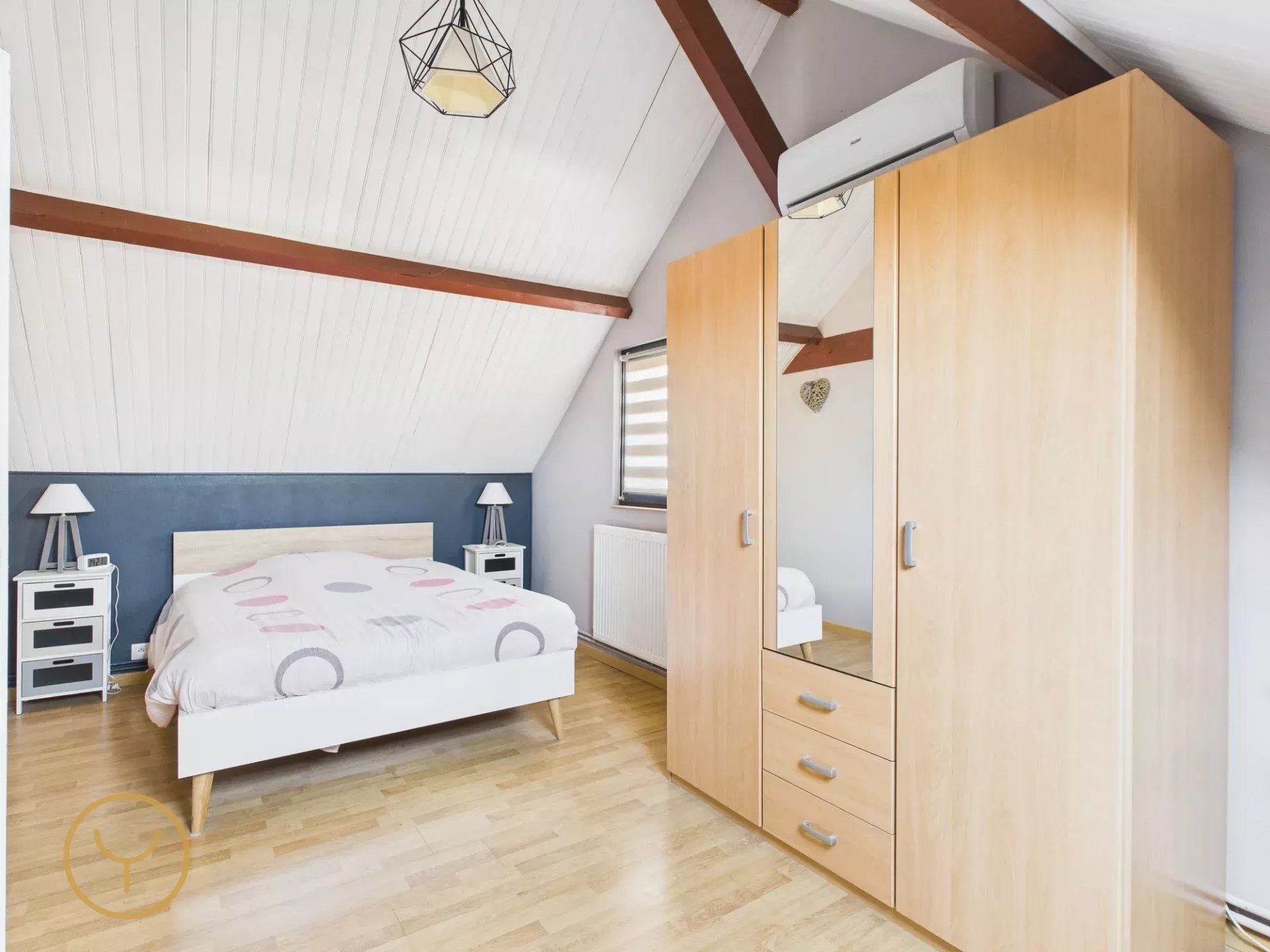 À l'étage, un palier dessert deux grandes chambres ainsi qu’un espace pouvant être aménagé en salle de bain, offrant ainsi une configuration idéale pour une vie de famille.