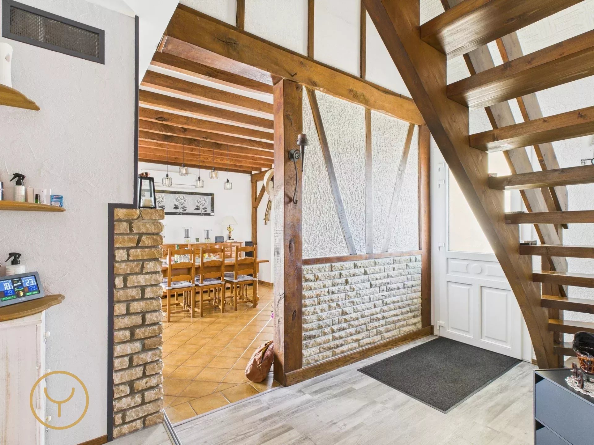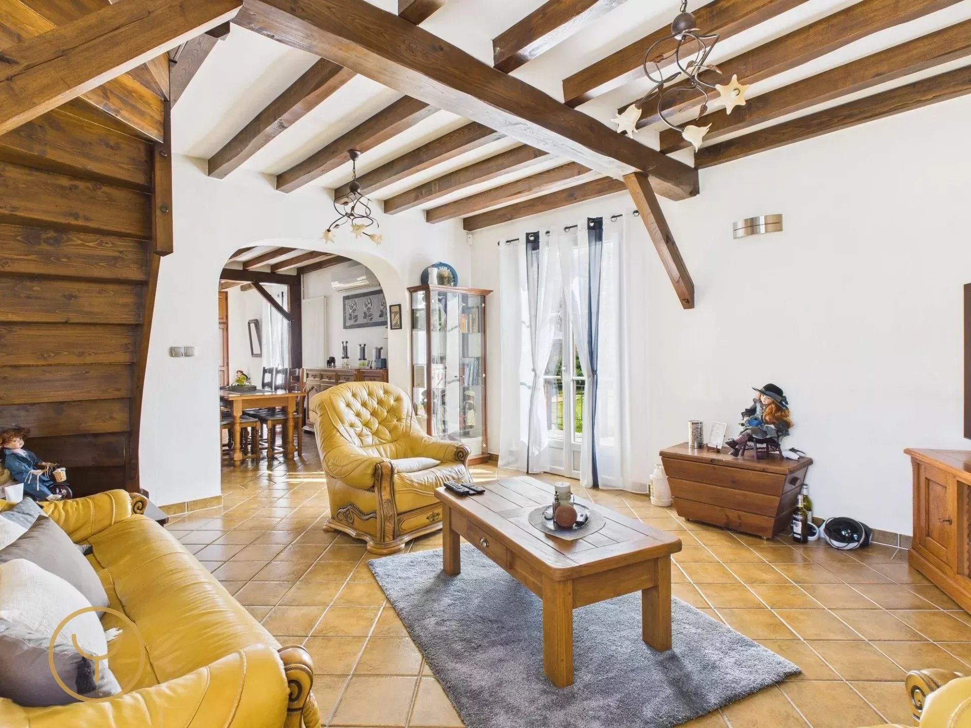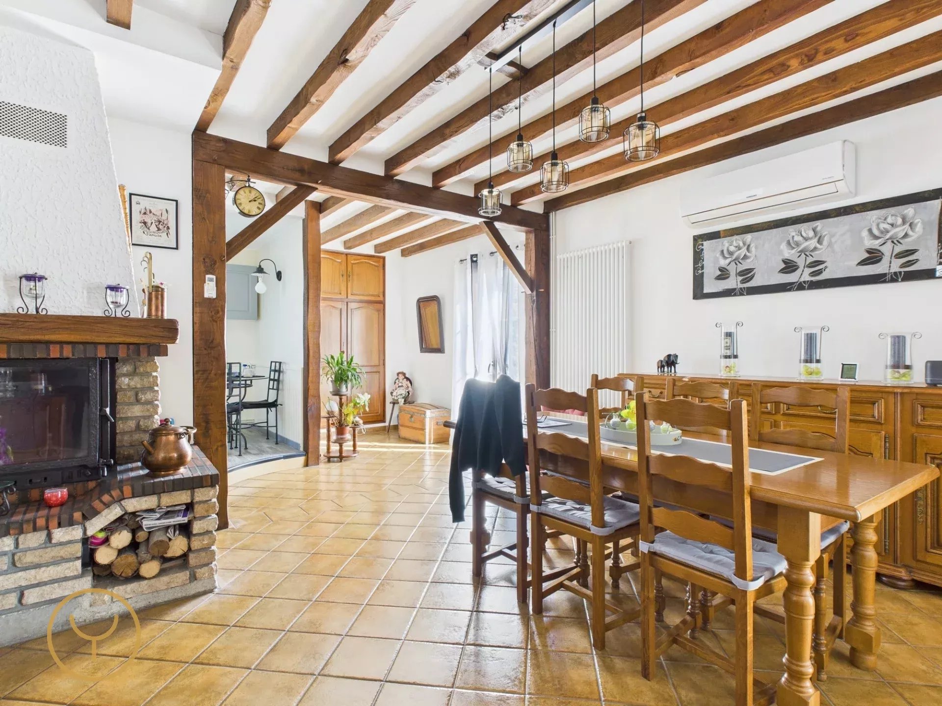 Dès l’entrée, le charme opère instantanément grâce aux poutres apparentes qui confèrent à cette maison un cachet authentique. Vous découvrirez ensuite une cuisine semi-ouverte et équipée donnant sur un bel espace séjour agrémenté d’une cheminée, avec un accès direct à une mezzanine, un lieu polyvalent à aménager selon vos envies.
