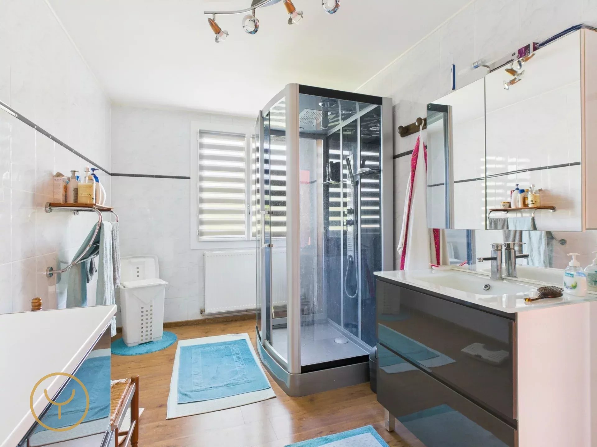 Le rez-de-chaussée offre également une grande salle d’eau avec toilettes séparés ainsi qu’une belle chambre spacieuse, idéale pour un confort de plain-pied.
