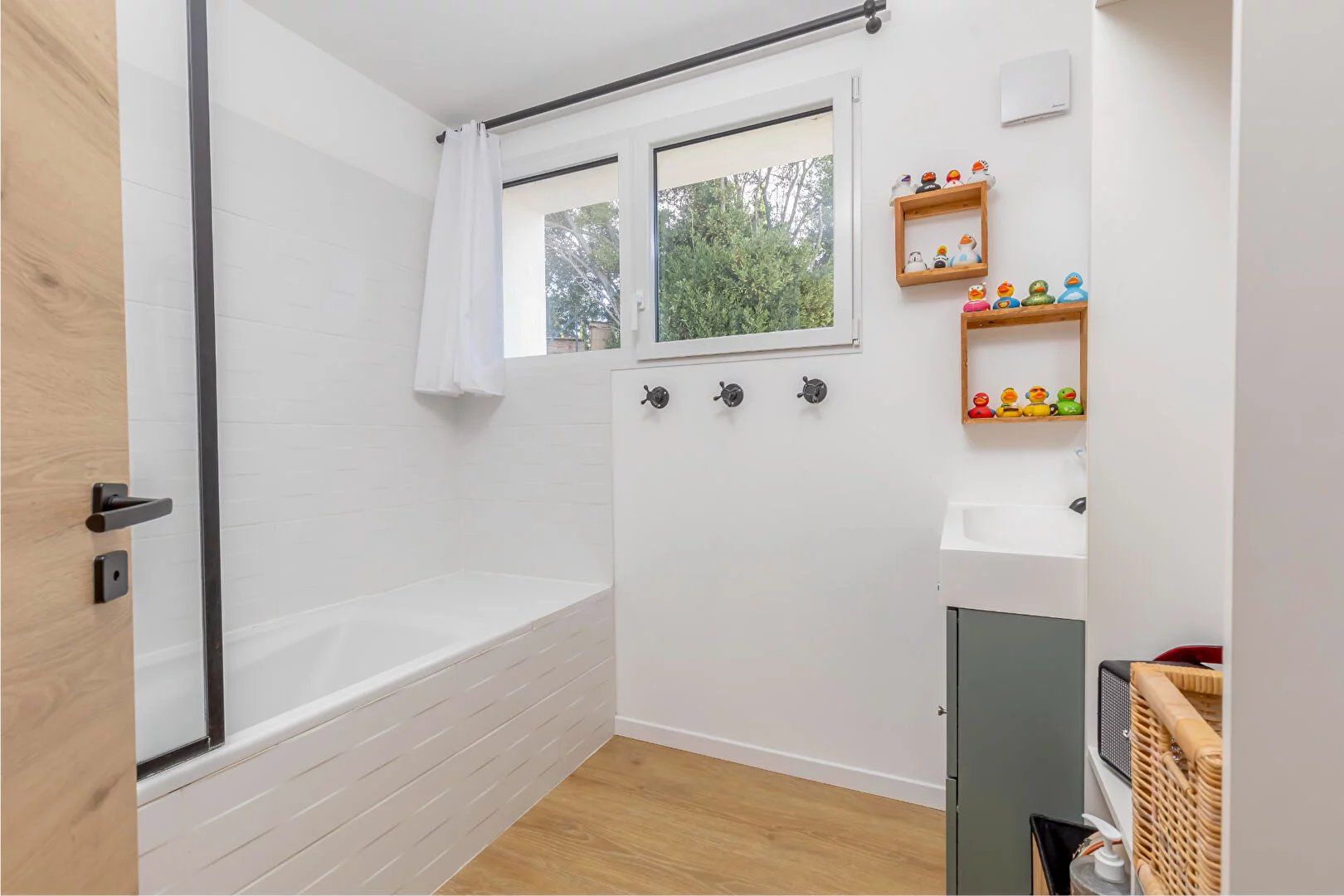 Superbe situation au calme en impasse et sans vis a vis pour cette villa de plan pieds rénovée 123 m2 habitable salon séjour avec poêle a granule cuisine dinatoire indépendante coin nuit : avec 4 chambres dont un studio ,un bureau, une sal ...