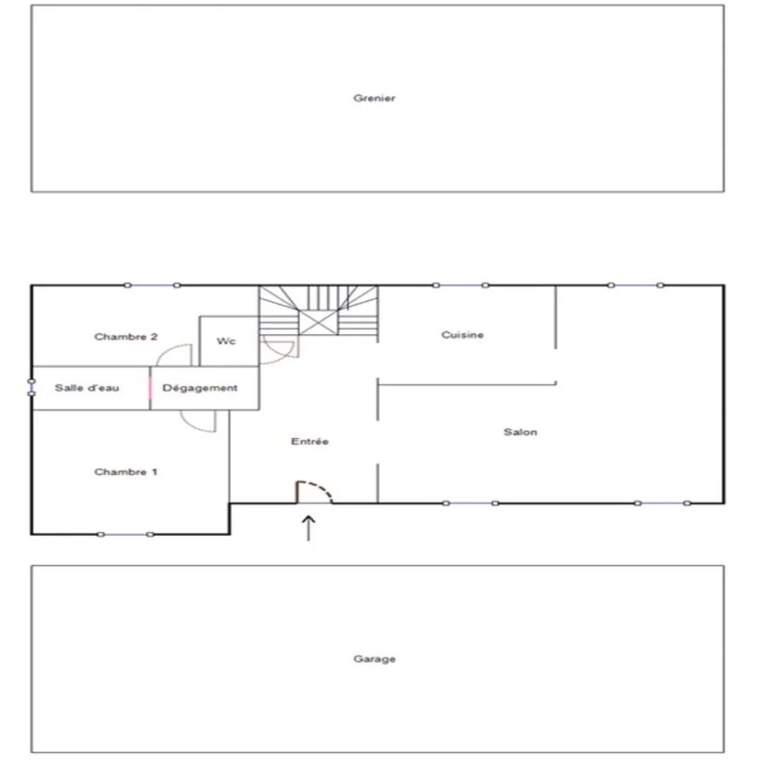 Au rez-de-chaussée : Une belle entrée, un salon - salle à manger, une cuisine, un wc, deux chambres et une salle d'eau.