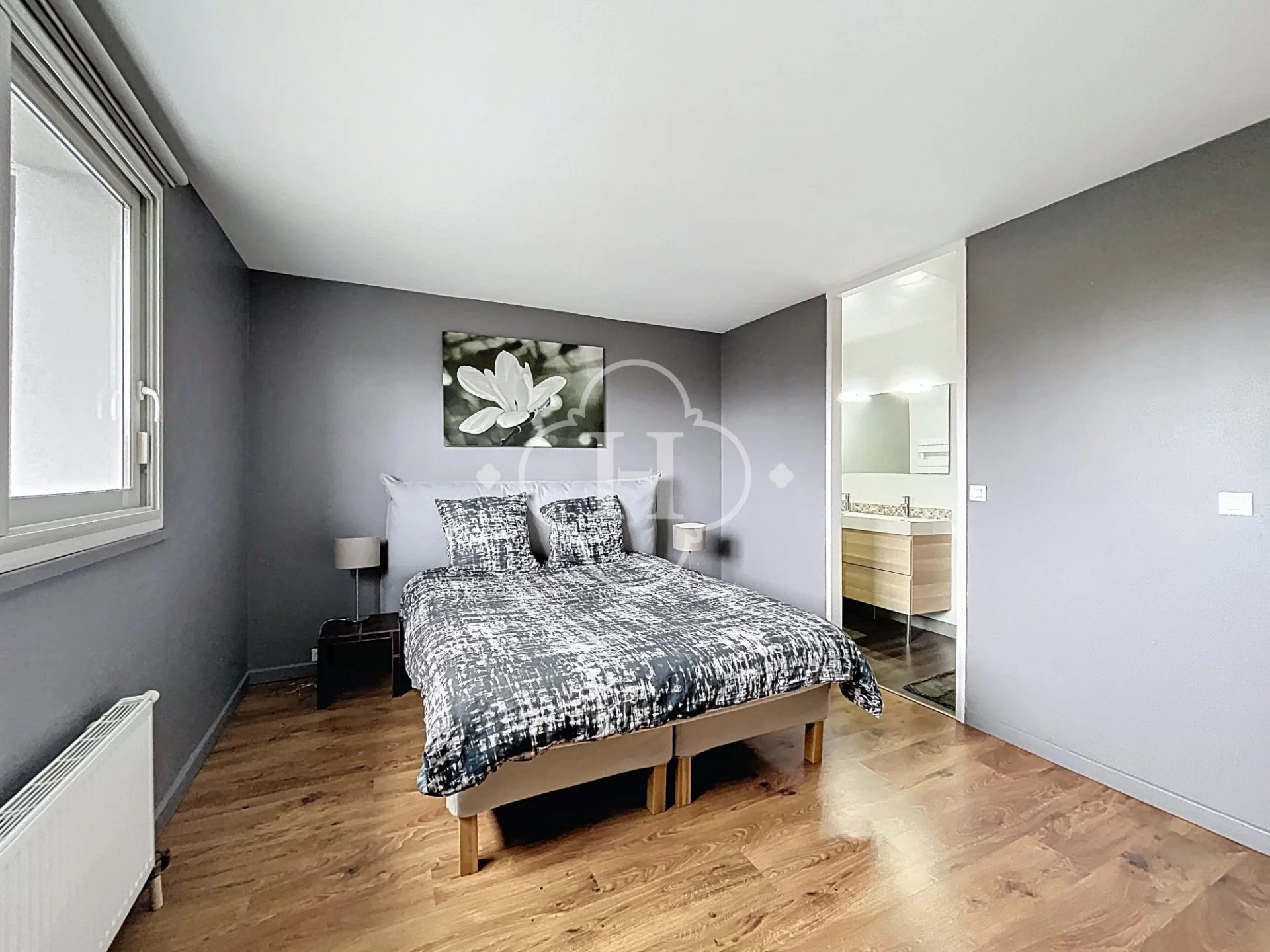 À l'étage, la suite parentale séduit par son dressing et sa salle de douche élégante. Trois autres chambres avec rangements et une salle de bains complètent ce niveau avec équilibre et confort.