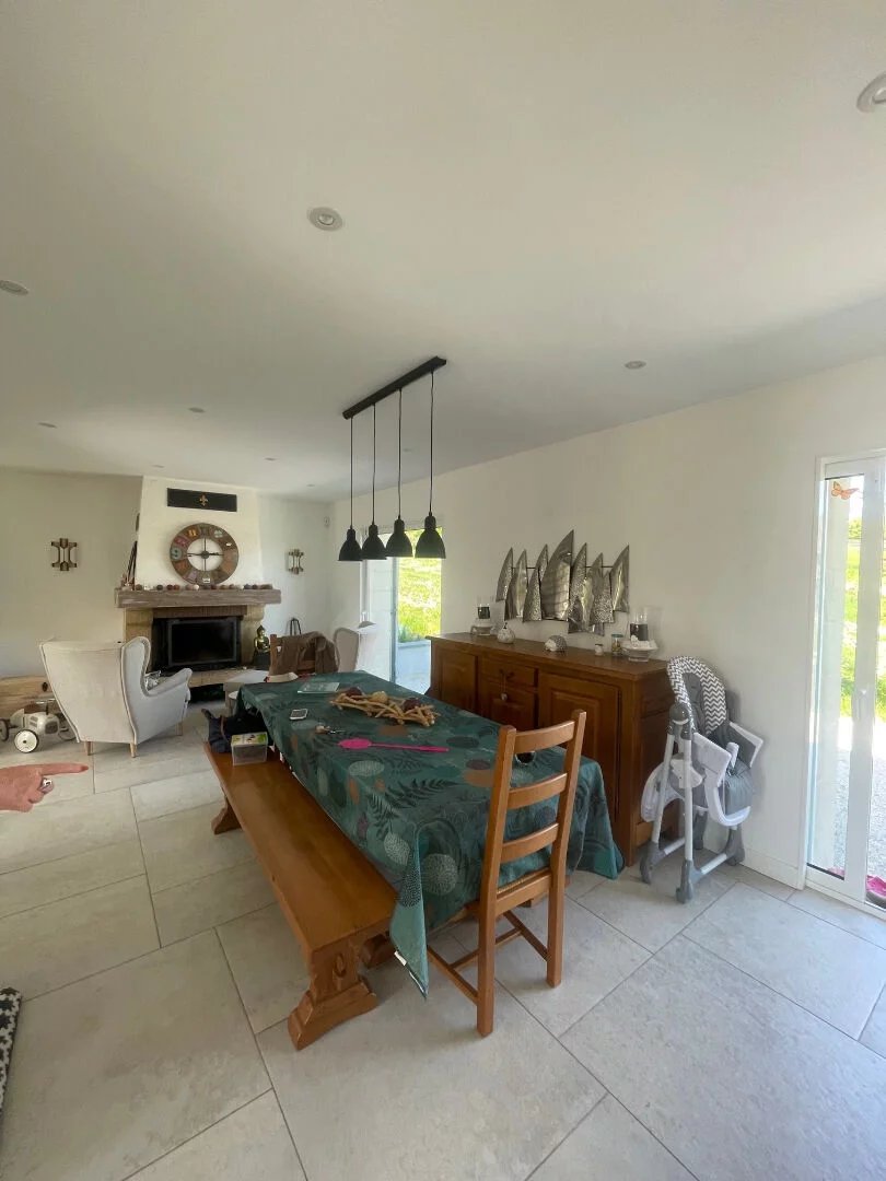 Au rez-de-chaussée, vous découvrirez une entrée accueillante, un vaste salon lumineux en L avec une cheminée à insert, une salle à manger conviviale et une cuisine moderne ouverte entièrement équipée. Une chambre et une salle de bains complètent ce niveau.