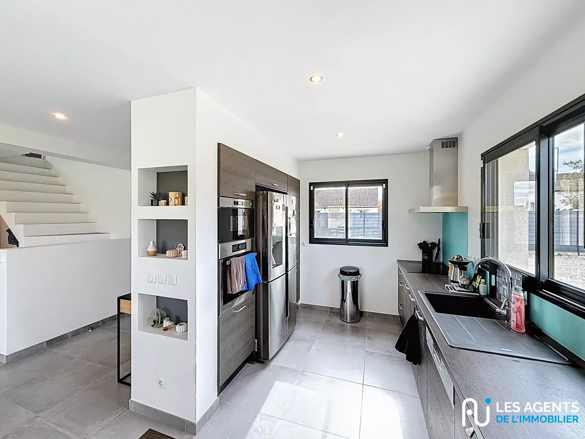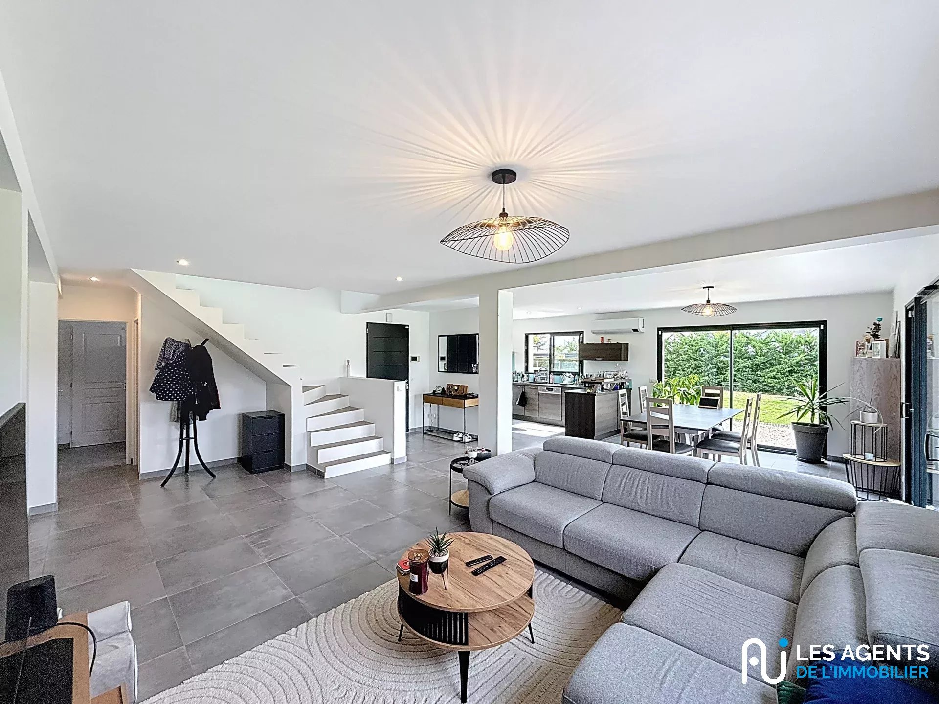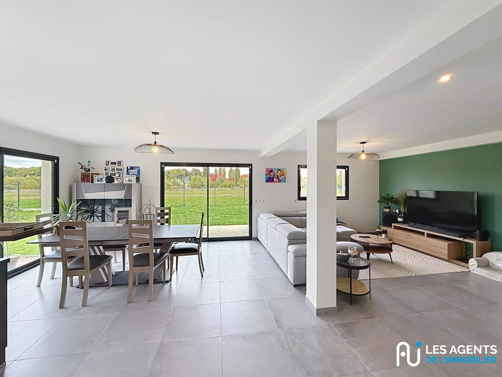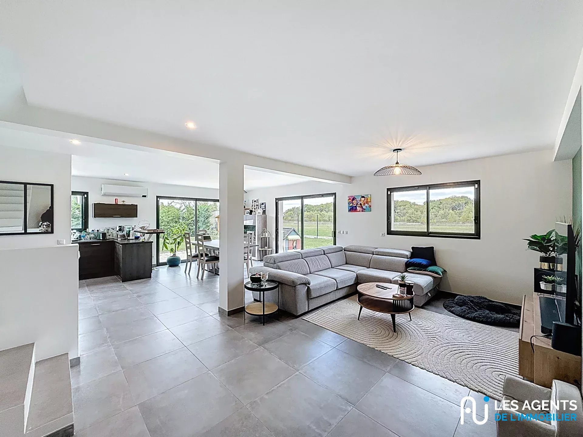 Dès l’entrée, vous serez séduit par une vaste pièce de vie de 60 m², baignée de lumière naturelle grâce à de grandes ouvertures, offrant un espace convivial et chaleureux pour vos moments en famille ou entre amis.