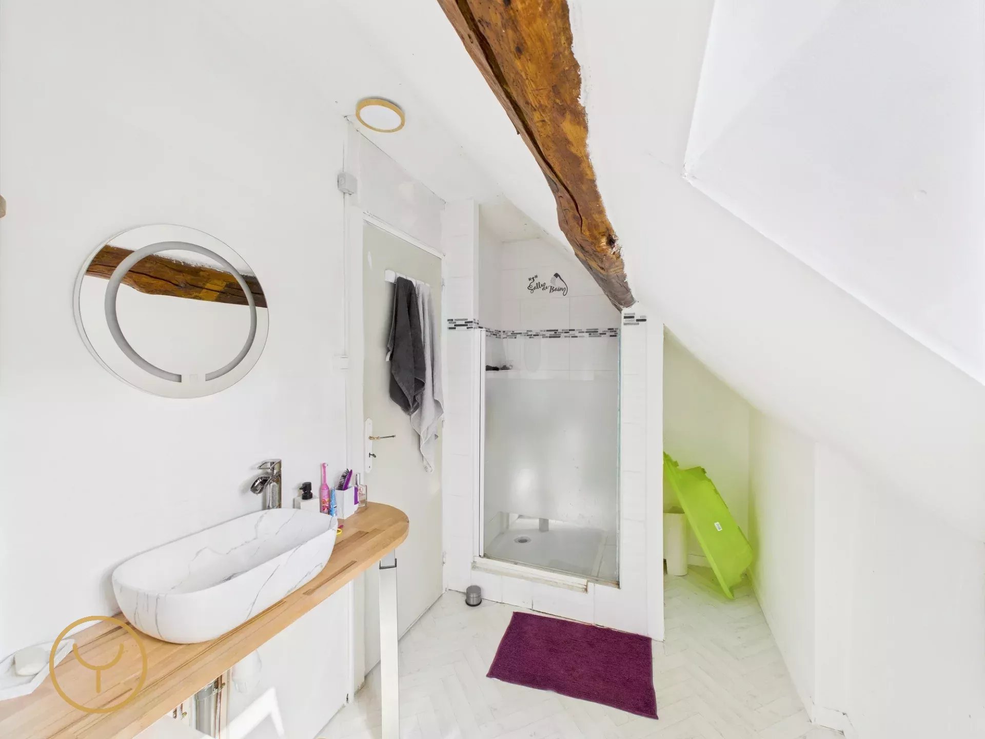 2 salles de douche avec WC, l'une au rez-de-chaussée, l'autre à l'étage, pour un confort optimal.