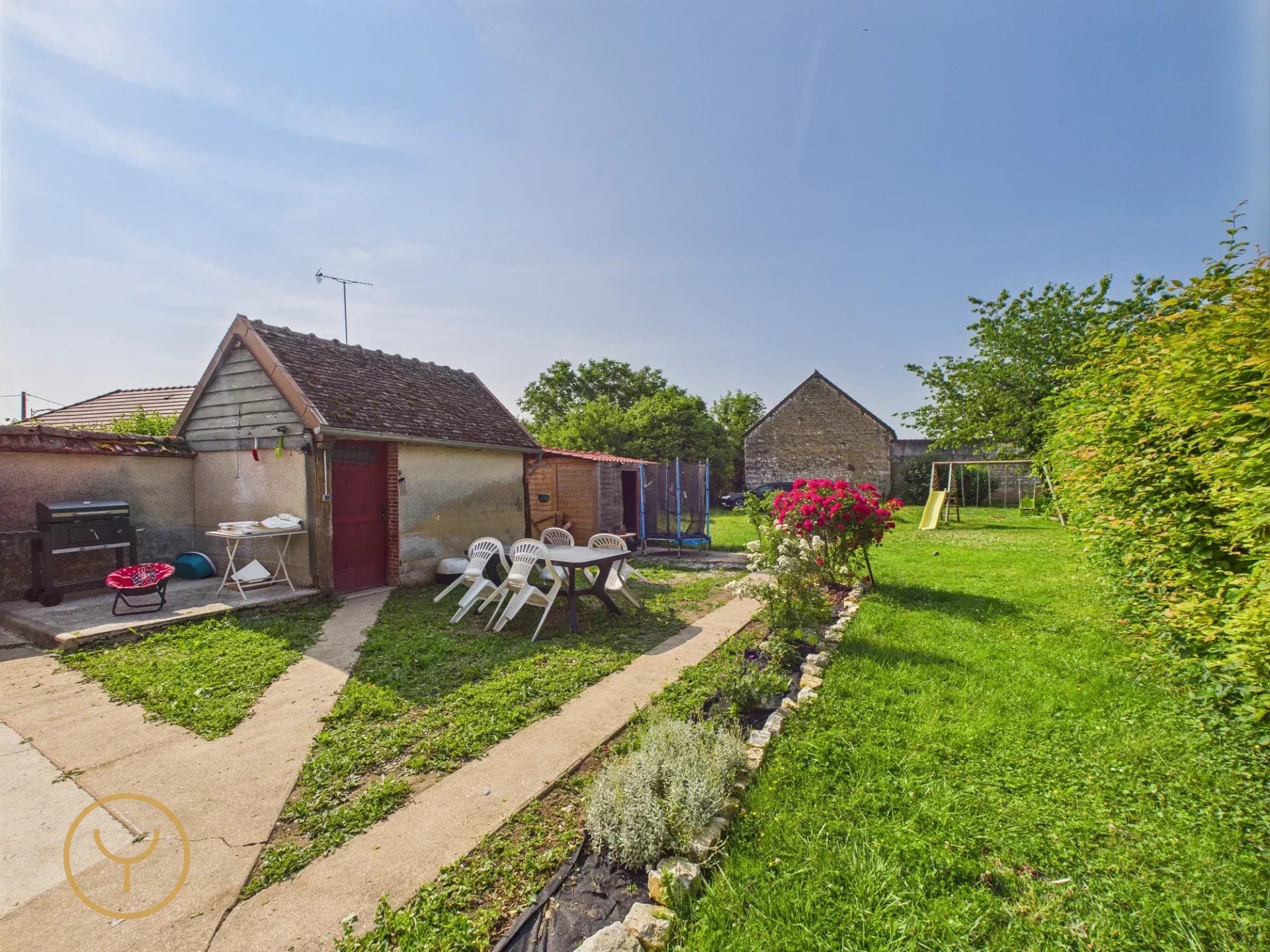 Le tout sur un jardin clos de 818 m², propice à la détente, aux repas en extérieur ou à la culture d’un potager.