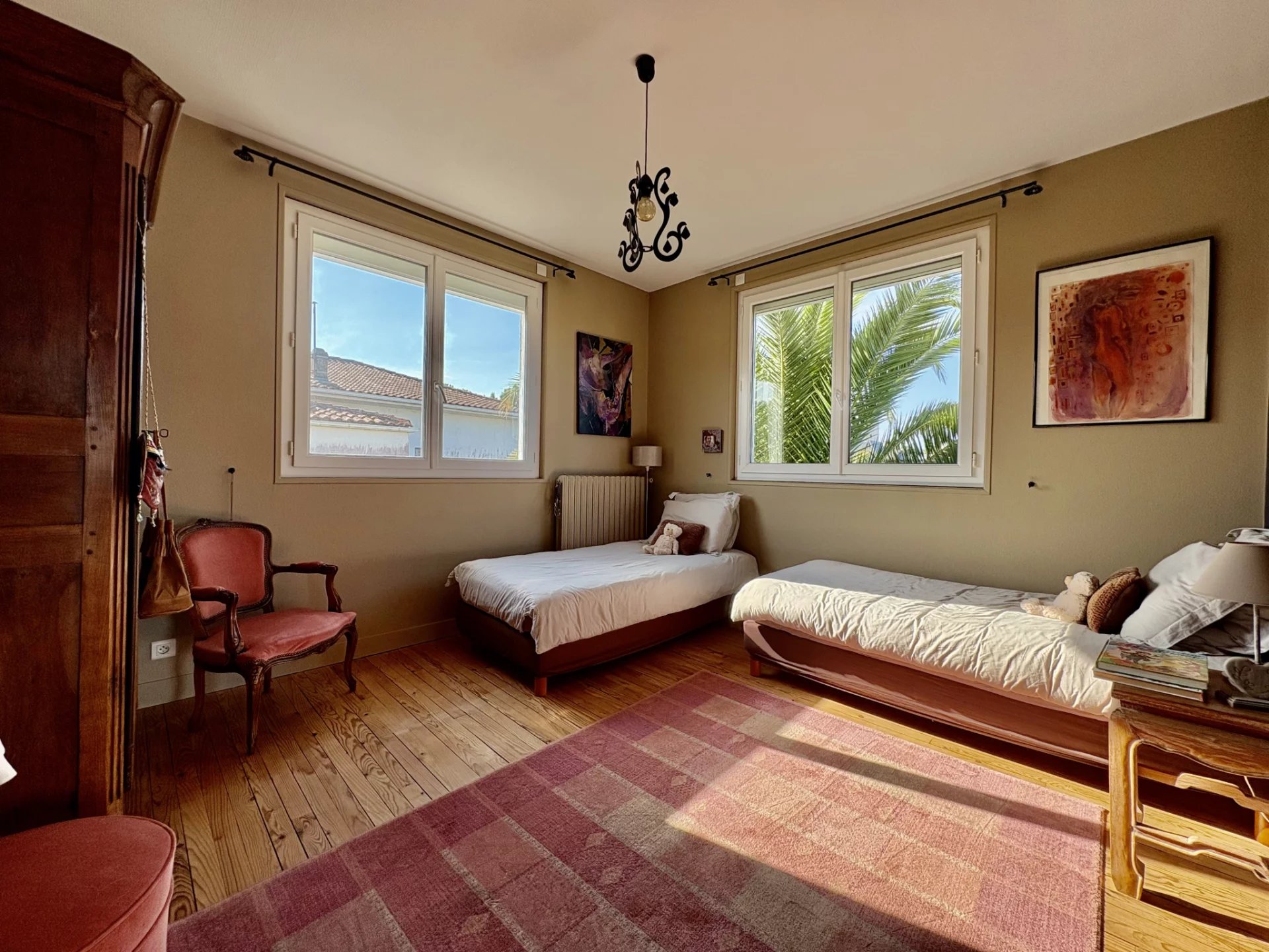 À seulement 200 mètres de la plage, au coeur du quartier très prisé de Pontaillac, cette élégante maison des années 40 incarne tout le charme de l'architecture balnéaire d'époque, subtilement modernisée pour offrir un confort contemporain.