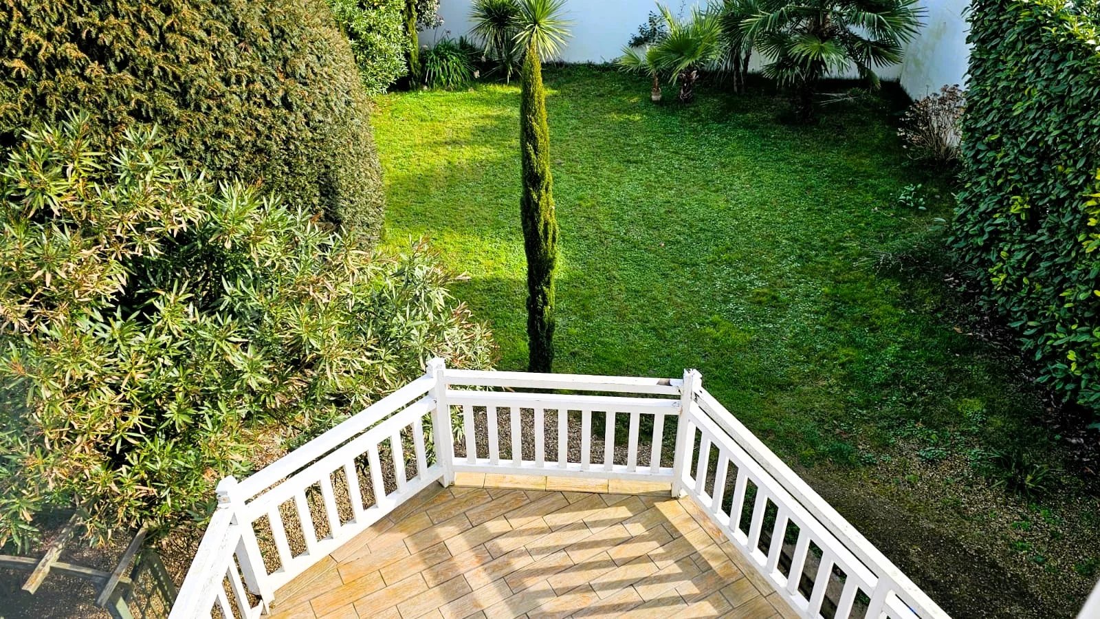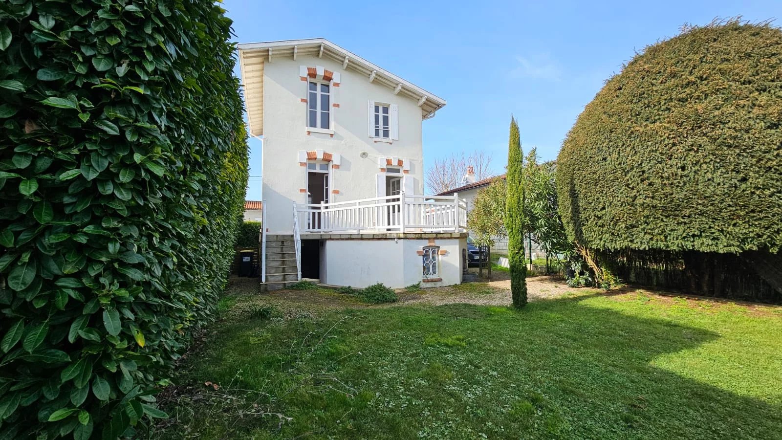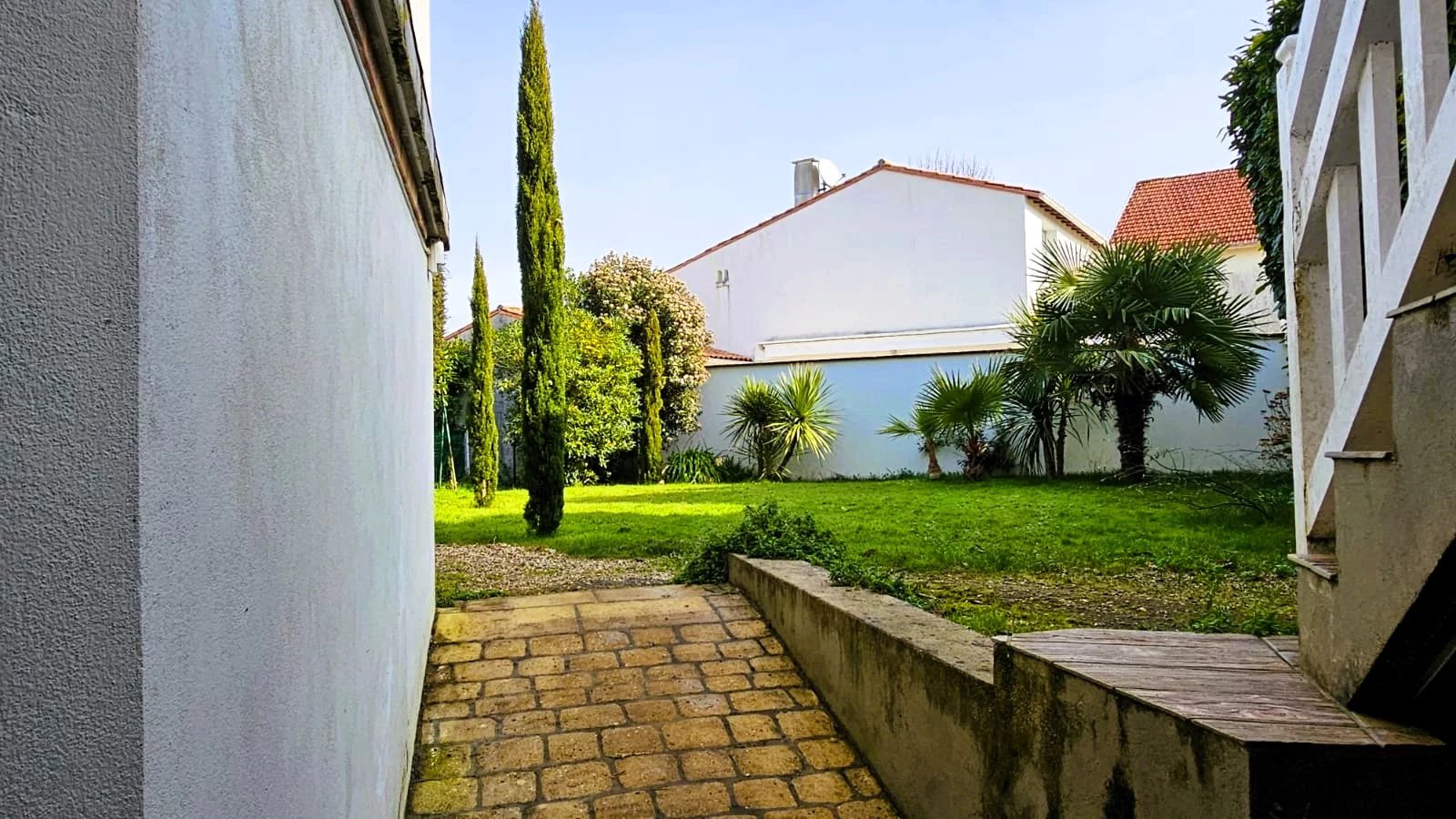 Jardin entièrement clos avec possibilité de stationner trois voitures en enfilade.