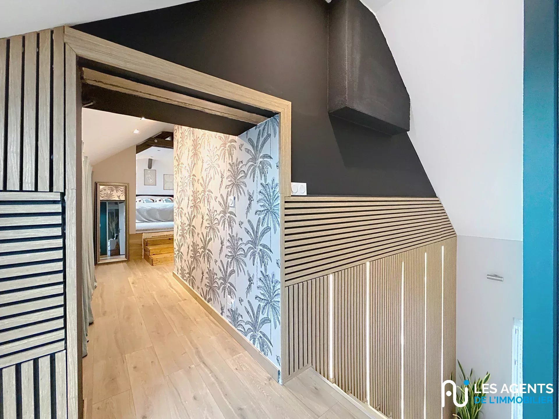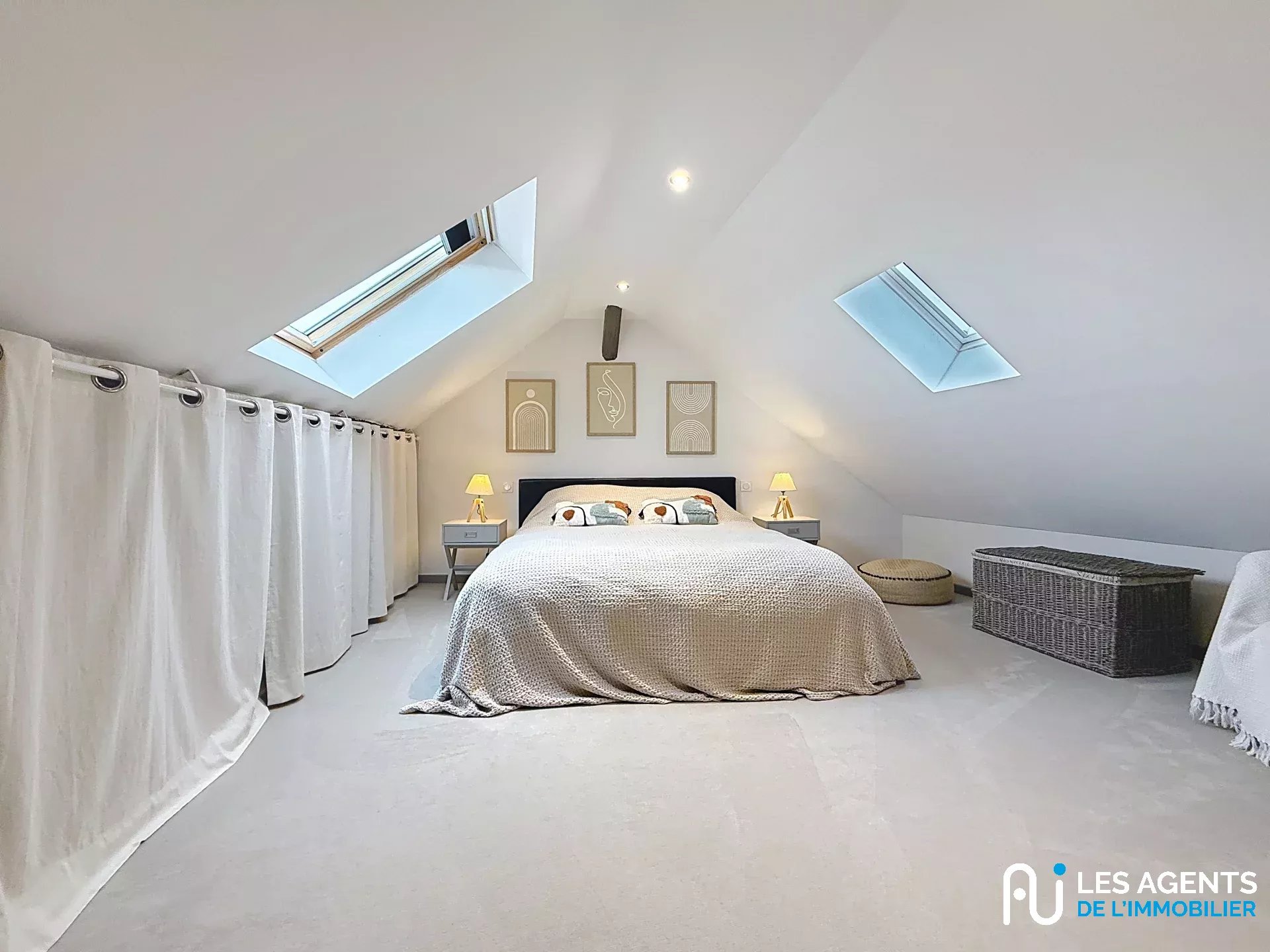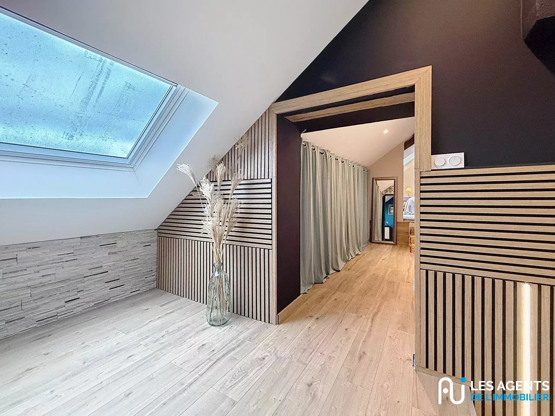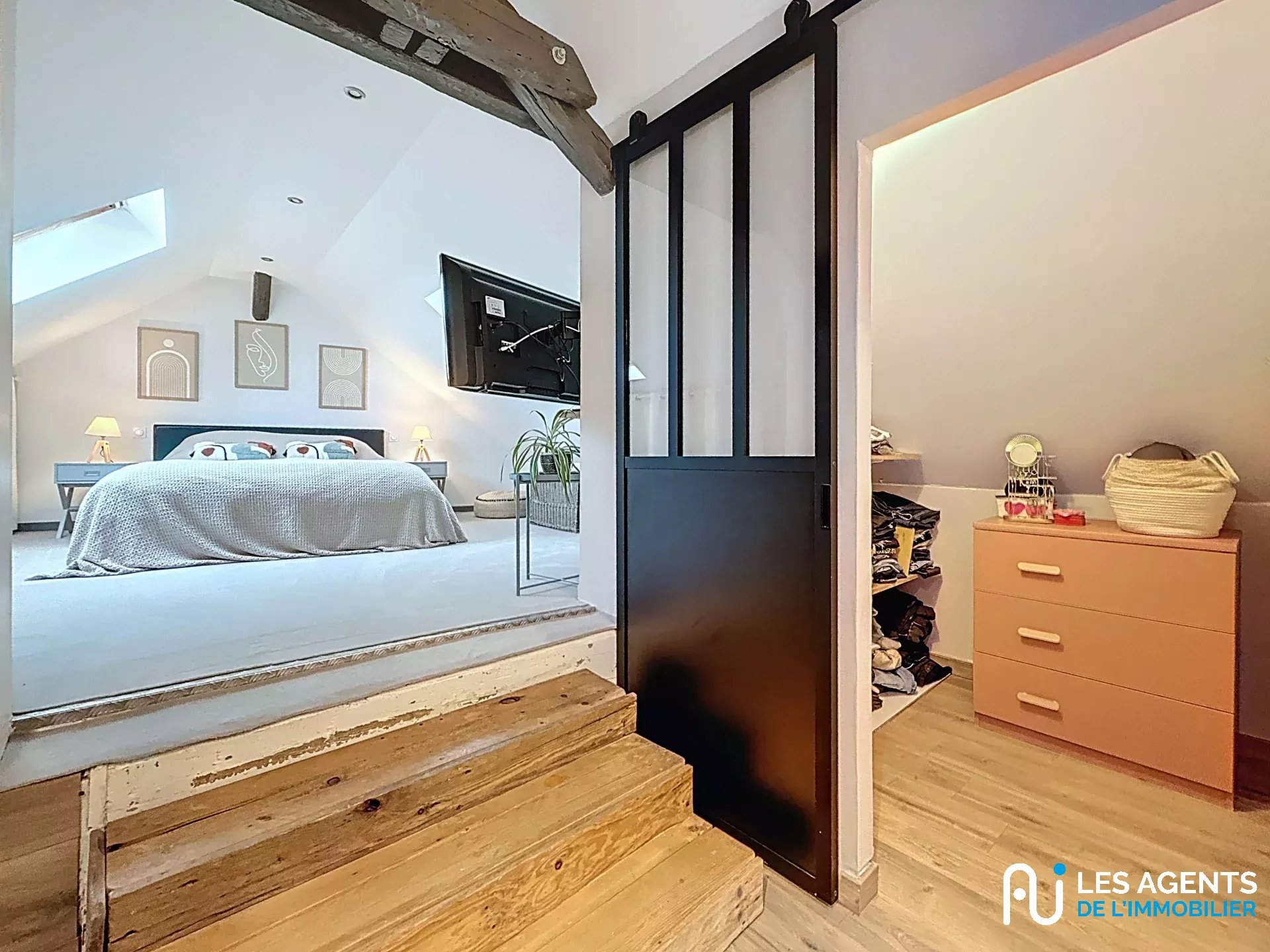 À l’étage, un palier dessert l’ensemble des pièces de nuit. Vous découvrirez trois chambres confortables, dont une suite parentale, dotée d’un dressing et d'un grand placard, d’une salle d’eau privative avec WC, garantissant un véritable espace intime et fonctionnel.