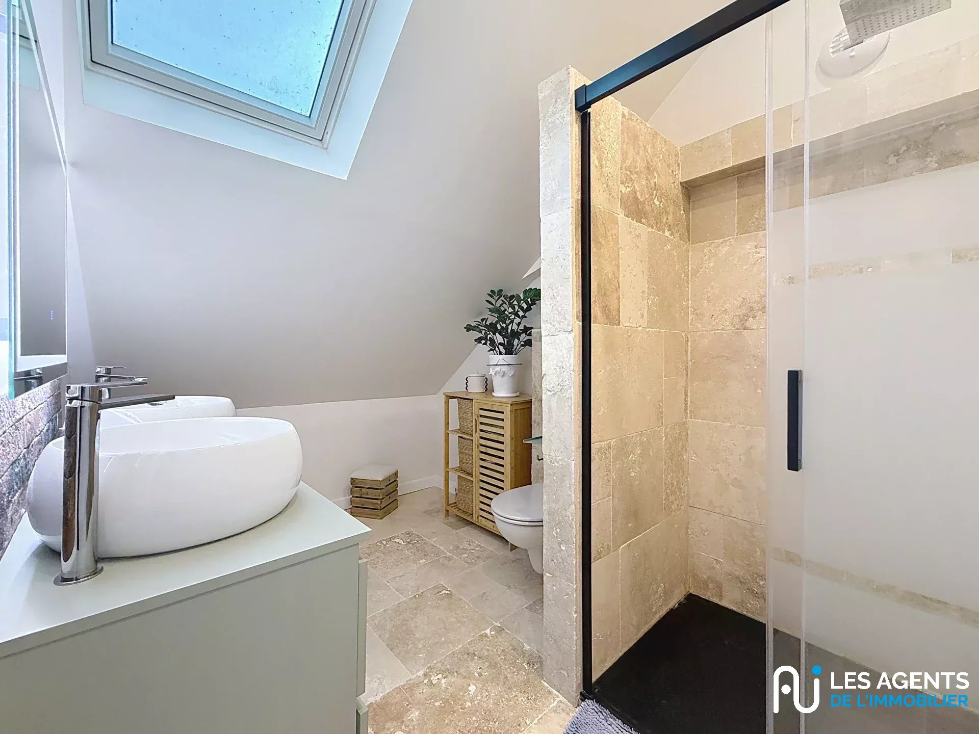 Dès l’entrée, vous serez séduits par la luminosité et les volumes généreux de la pièce de vie. Le rez-de-chaussée accueille une superbe pièce séjour/cuisine de 60 m², complètement ouverte, offrant un espace convivial et chaleureux pour partager des moments en famille ou entre amis, de plus une baie vitrée à galandage vous donnera accès à la terrasse extérieure. Un WC avec espace buanderie, discrètement intégré, vient compléter ce niveau pour plus de praticité.