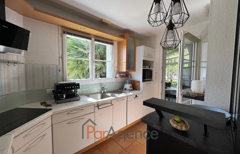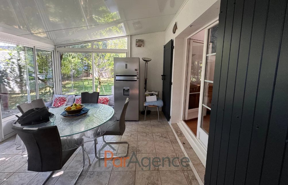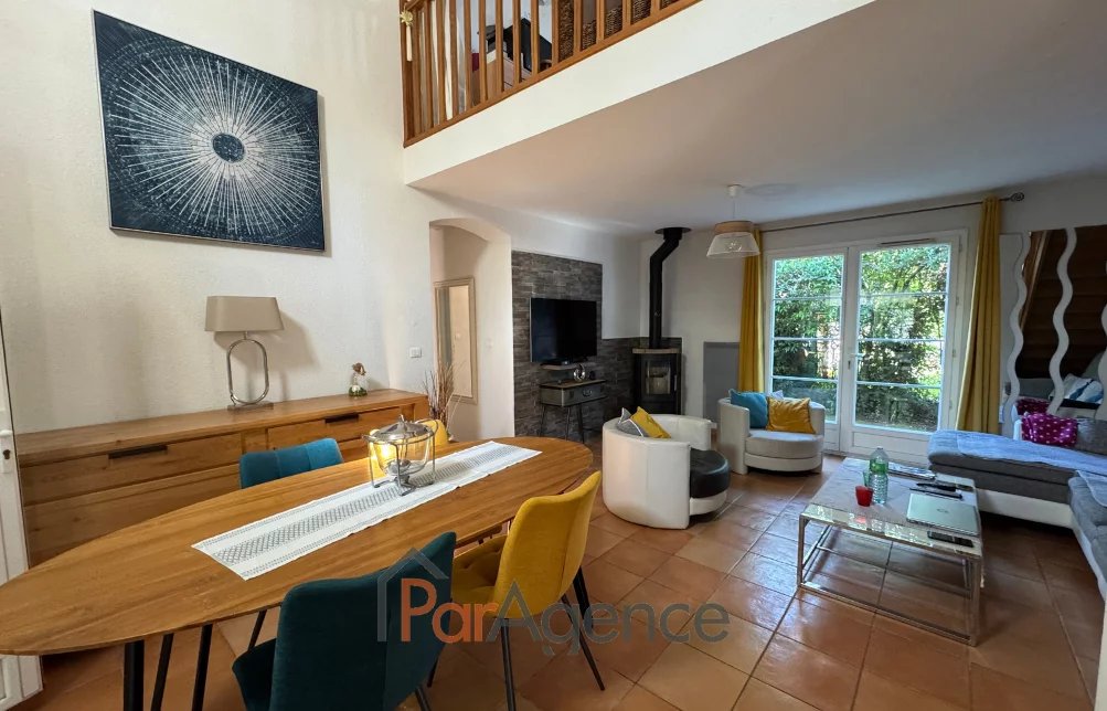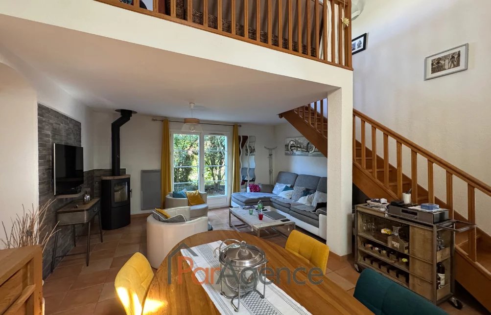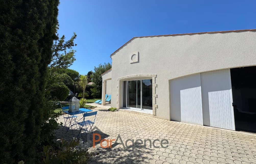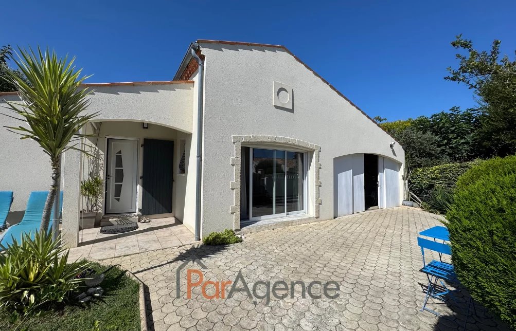 EXCLUSIVITE SAINT-PALAIS-SUR-MER A 350 m du Parc de la Mairie de Vaux-sur-mer et 1300 m de la plage de Nauzan, Maison 3 chambres + mezzanine construite en 1998, en parfait état, comprenant pour environ 110 m2 habitables : entrée avec placard, salon avec poele à bois scandinave, surmonté d'une mezzanine, cuisine équipée, ces deux pièces donnant sur une véranda de 14 m2, dégagement desservant deux chambres dont une avec placard, salle d'eau et w.c. séparé, cellier, salle d'eau avec w.c., une troisième chambre avec mezzanine mansardée. Chauffage électrique. En annexes : Un garage attenant de 24.50 m2. Le tout sur un terrain clos et paysager de 629 m2. Les informations sur les risques auxquels ce bien est exposé sont disponibles sur le site Géorisques : www.georisques.gouv.fr. Prix 540800 EUR dont honoraires d'agence à la charge de l'acquéreur 4.% TTC soit 20800 EUR (520000 EUR hors honoraires). https://www.par-agence.fr/nos-honoraires.